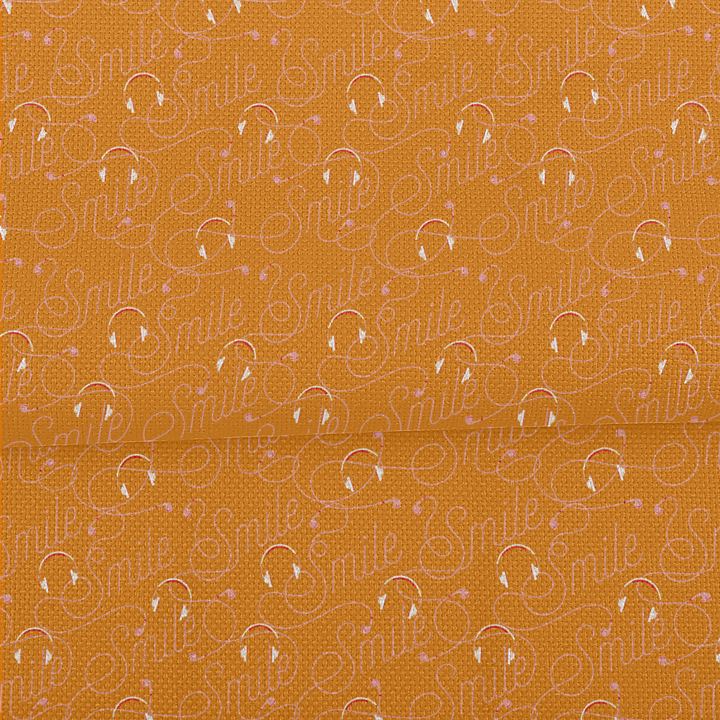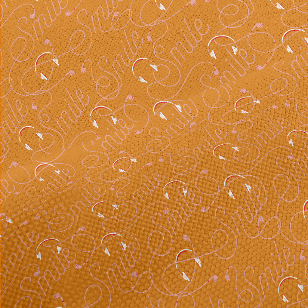 耳機線與微笑文字麻布(幅寬150公分)