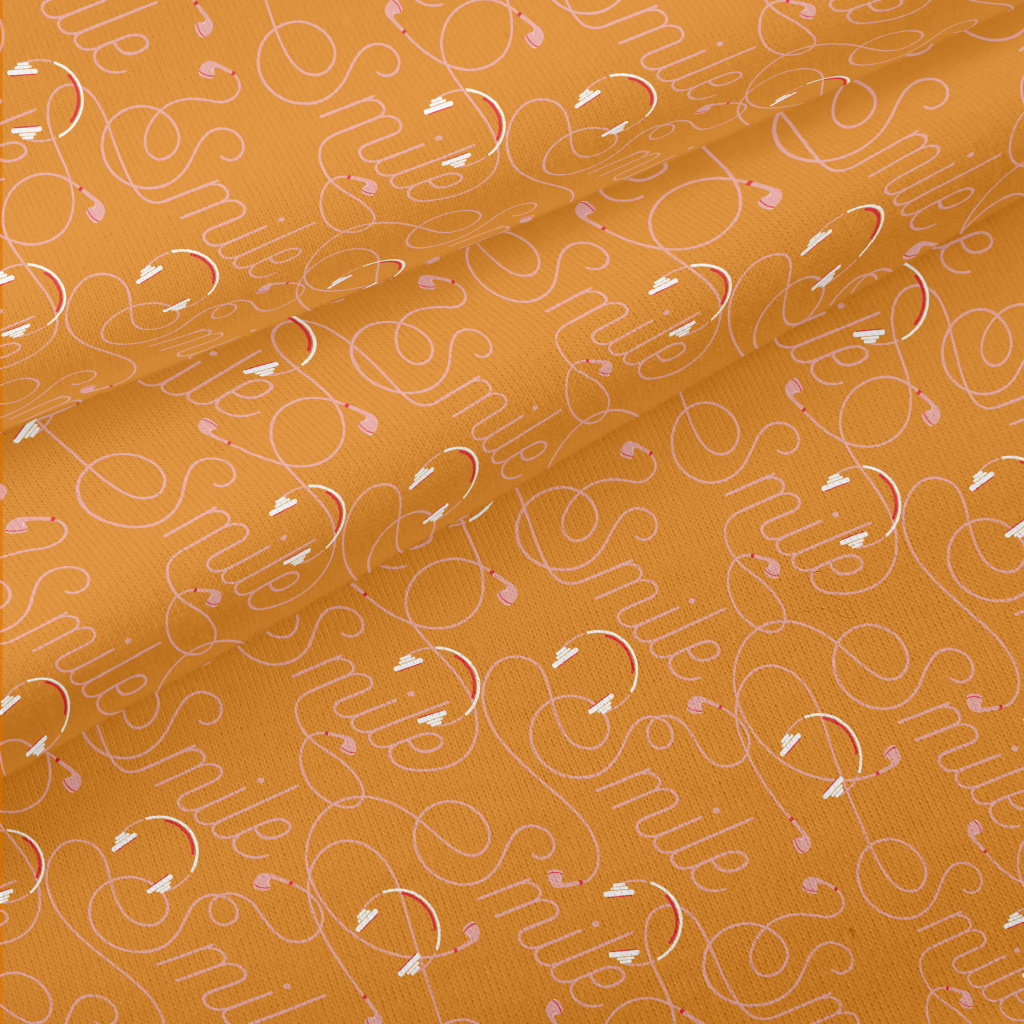 耳機線與微笑文字仿棉布(幅寬150公分)