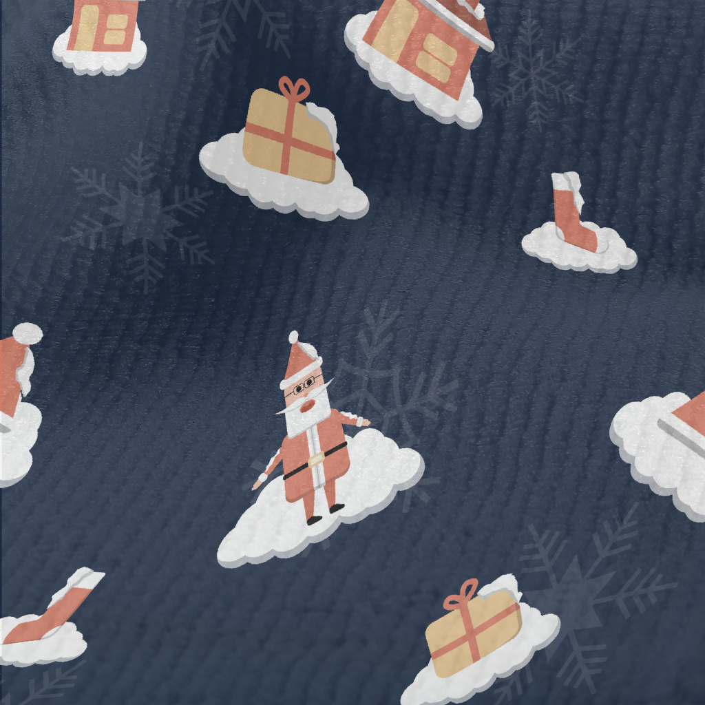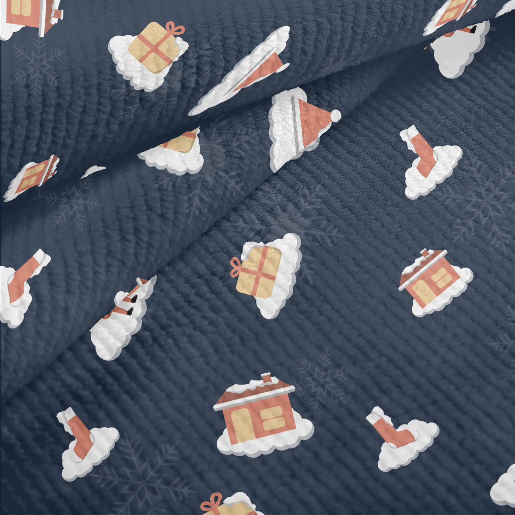 聖誕老人和禮物房屋毛巾布(幅寬160公分)