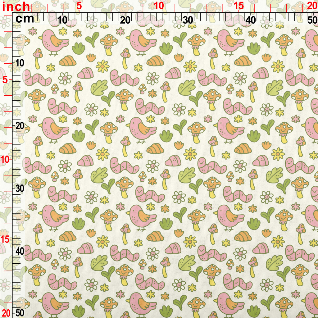 卡通蘑菇蚯蚓小鳥花朵羅馬布(幅寬160公分)
