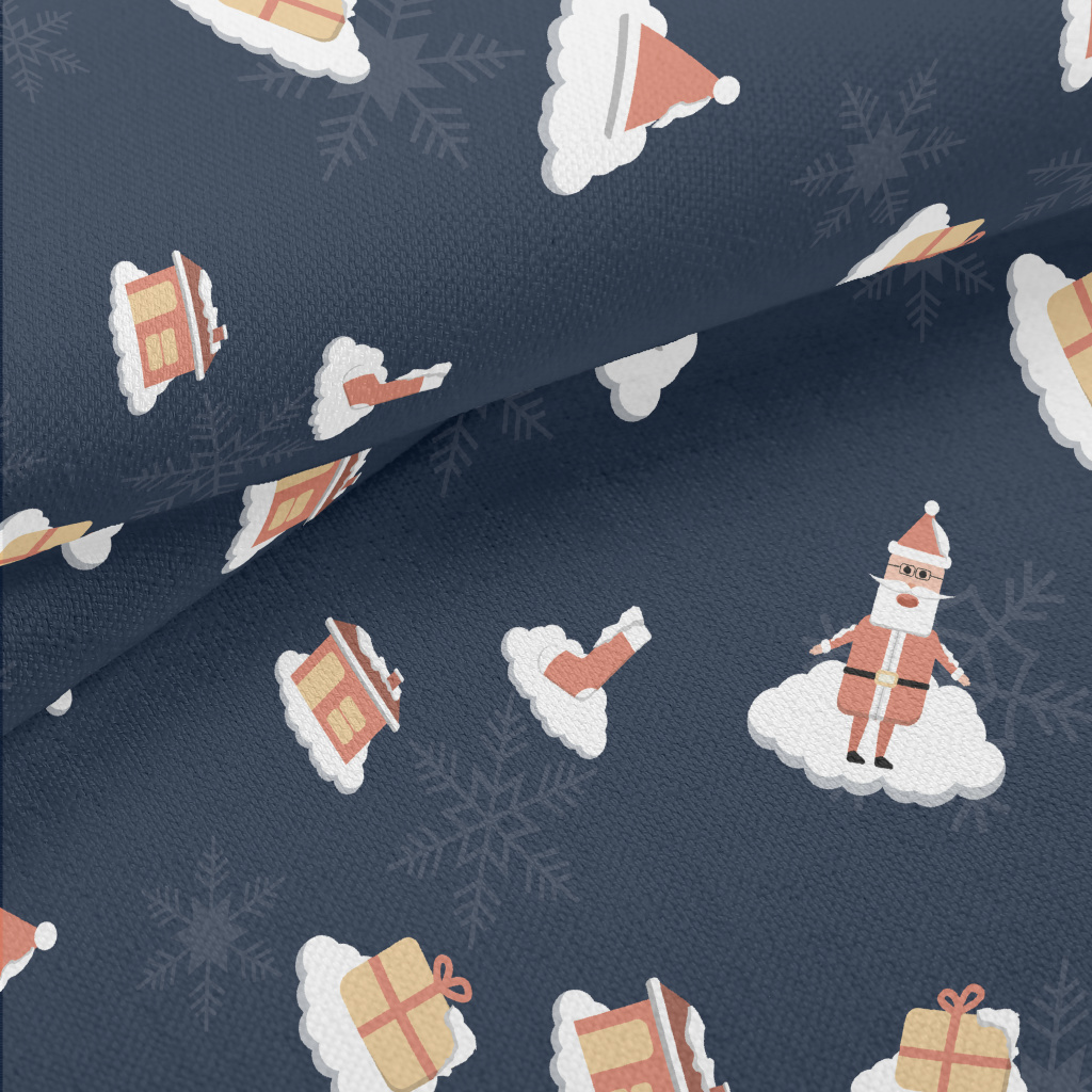 聖誕老人和禮物房屋竹節麻(幅寬150公分)