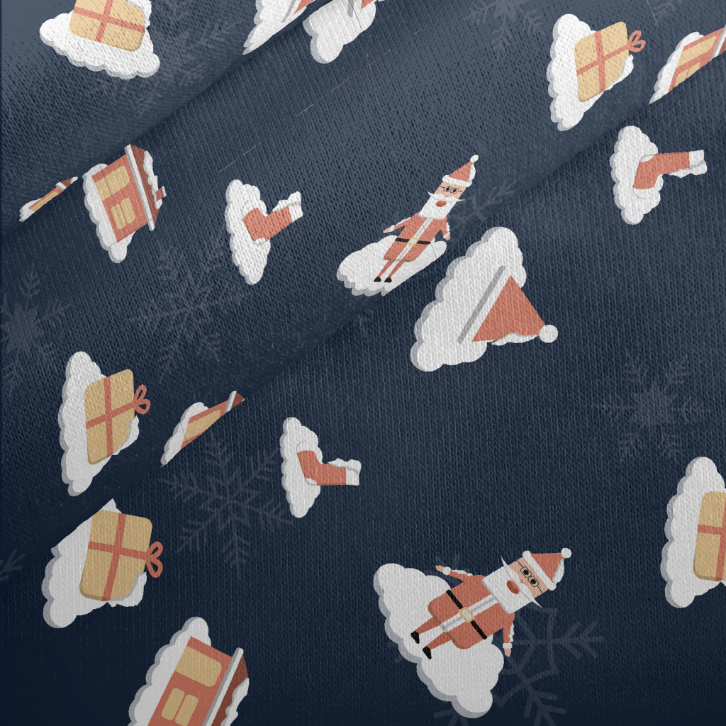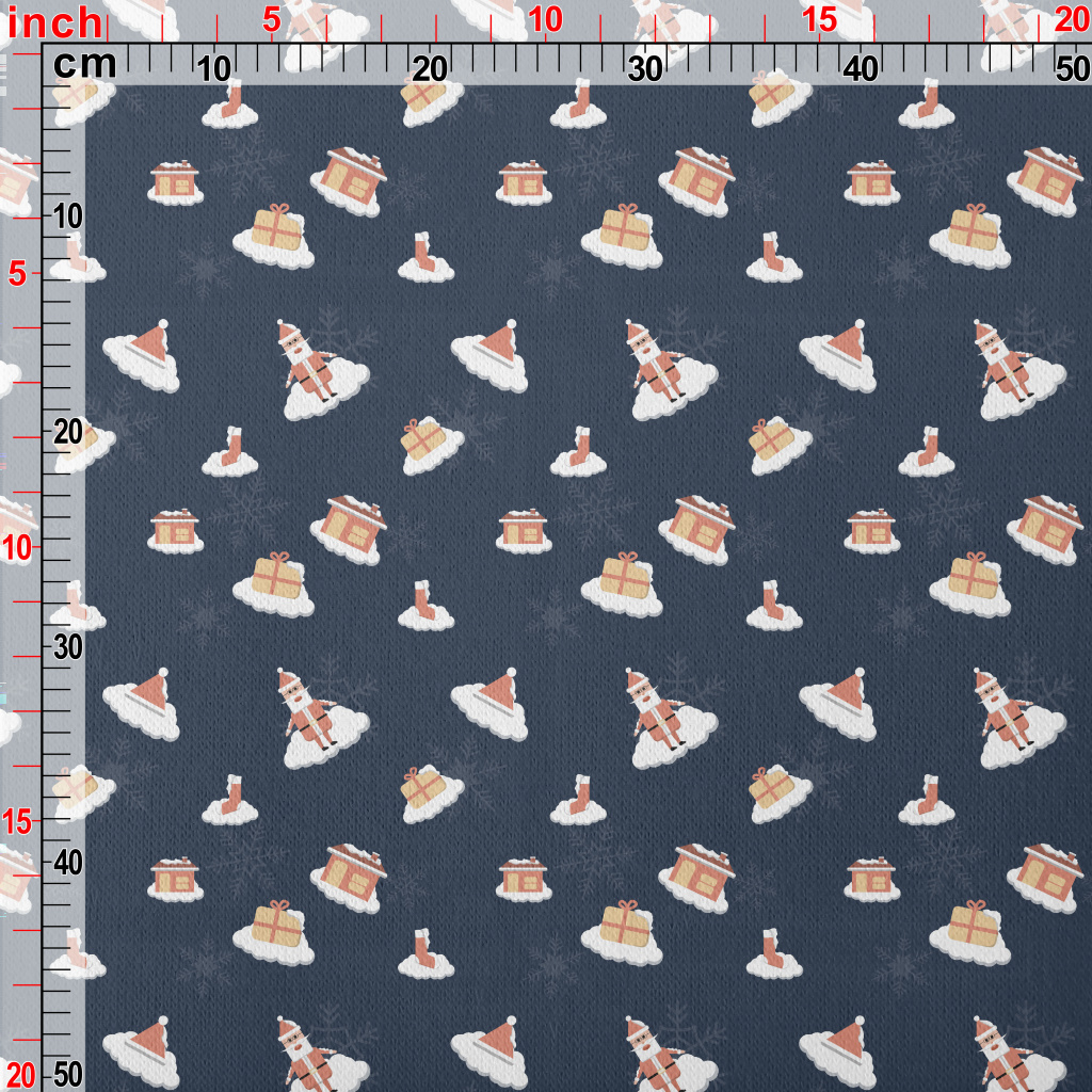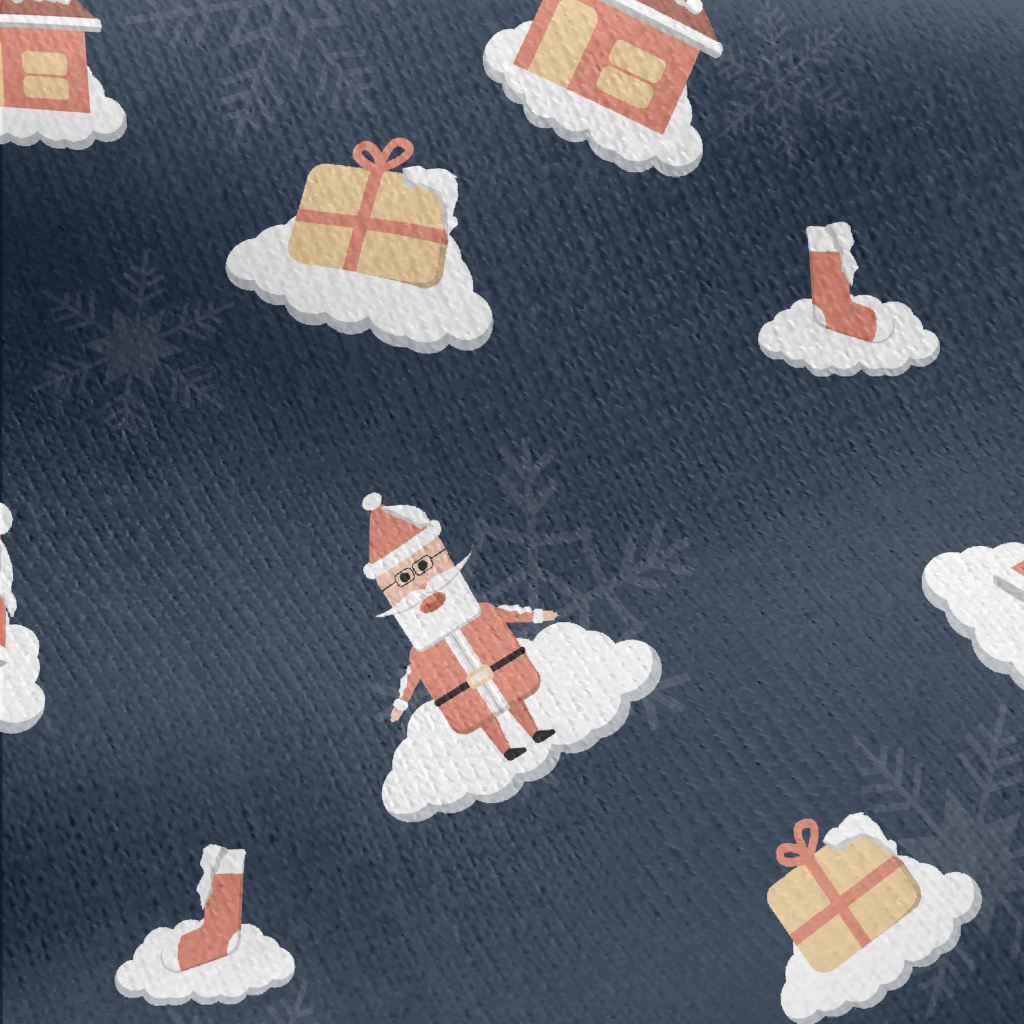 聖誕老人和禮物房屋刷毛布(幅寬150公分)