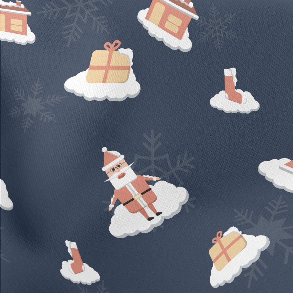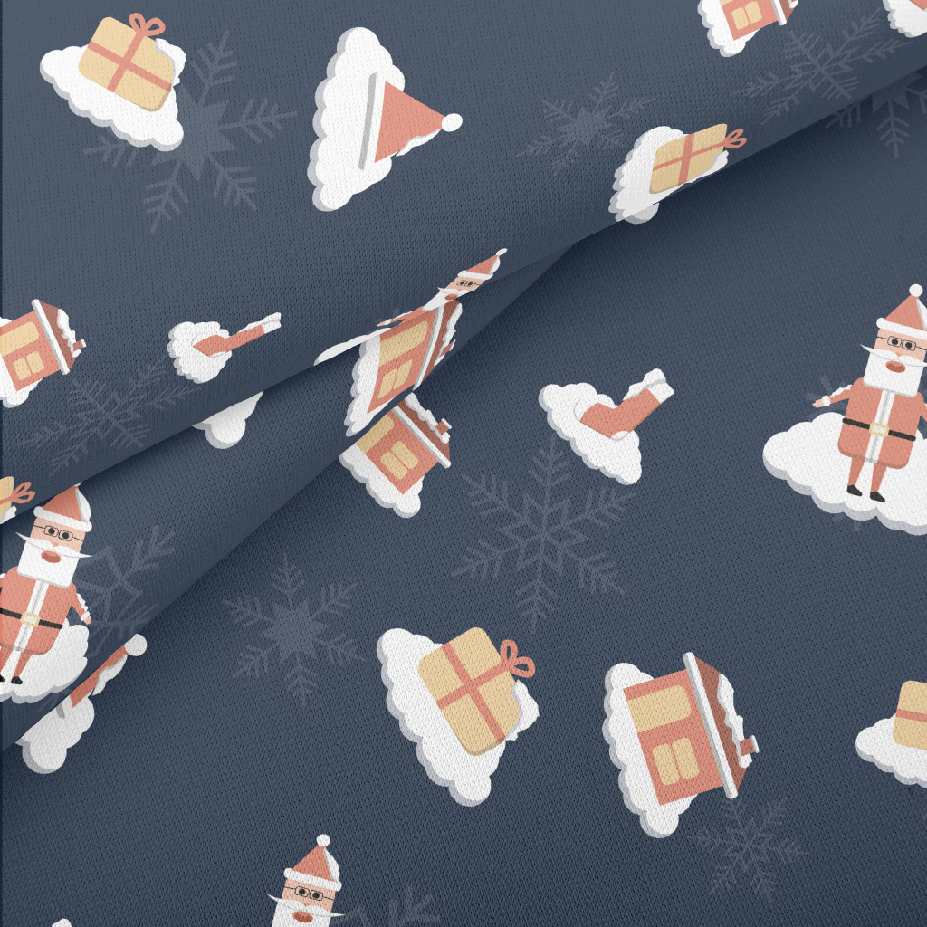 聖誕老人和禮物房屋薄棉布(幅寬150公分)