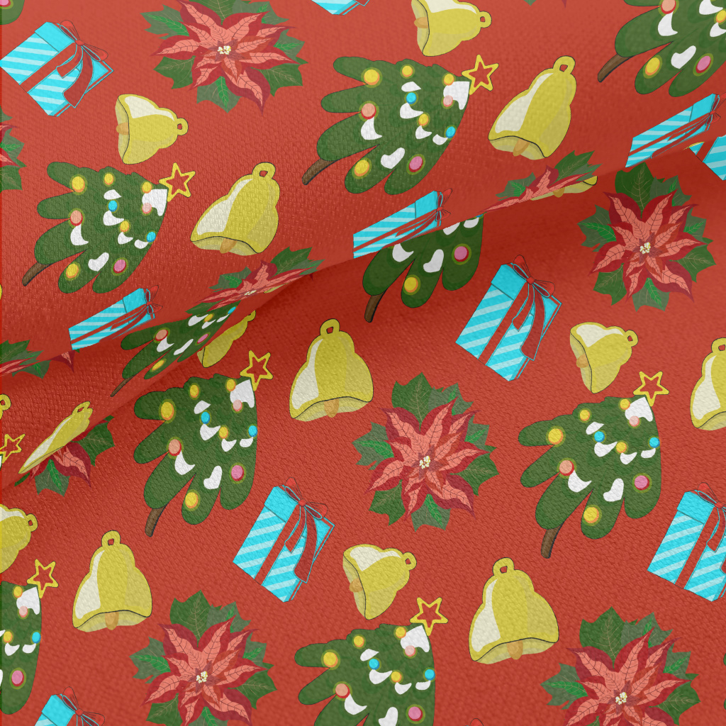 聖誕一品紅禮物鈴鐺竹節麻(幅寬150公分)