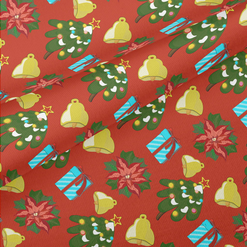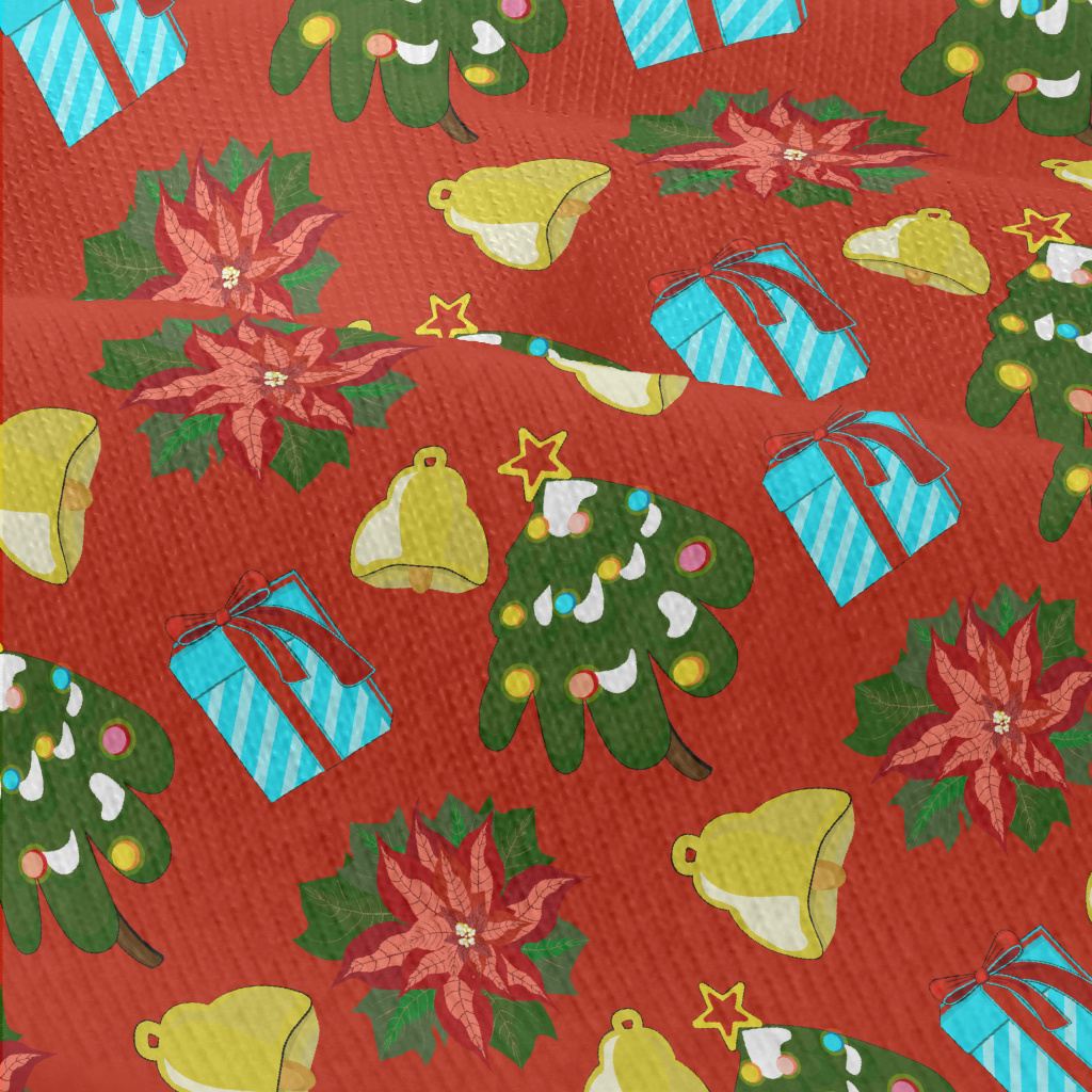 聖誕一品紅禮物鈴鐺仿棉布(幅寬150公分)