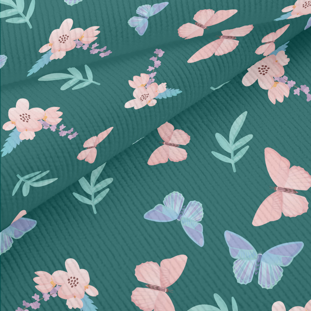 花朵和蝴蝶燈芯絨(幅寬150公分)