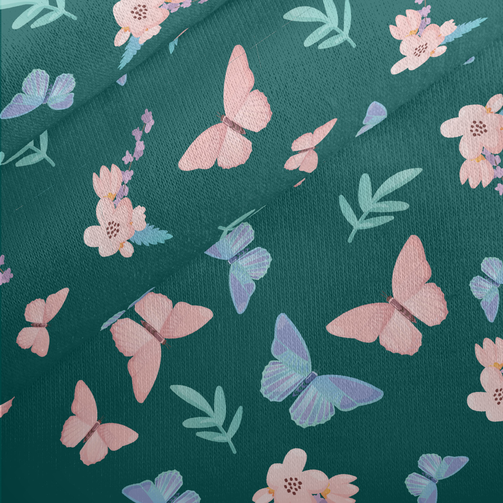 花朵和蝴蝶刷毛布(幅寬150公分)