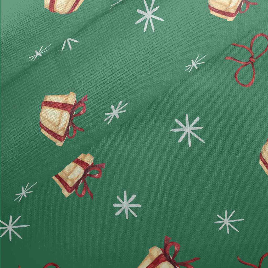 手繪水彩禮物和雪花刷毛布(幅寬150公分)