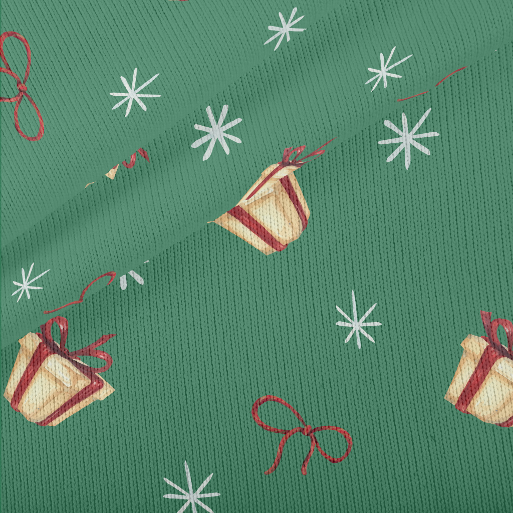 手繪水彩禮物和雪花仿毛衣布(幅寬150公分)