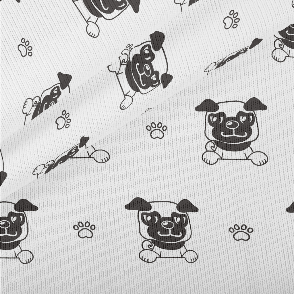 黑白卡通哈巴狗仿毛衣布(幅寬150公分)