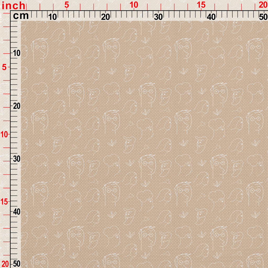 線條藝術人臉圖像麻布(幅寬150公分)