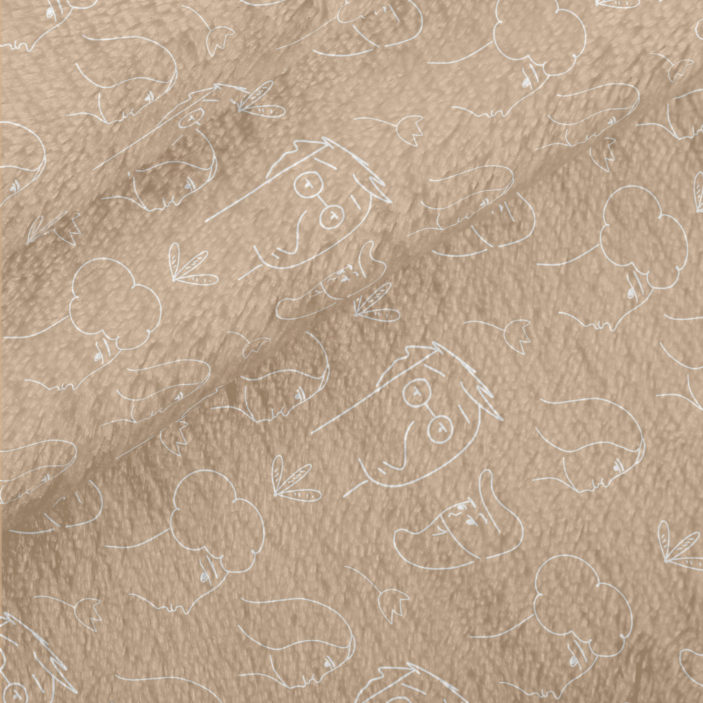 線條藝術人臉圖像法蘭絨(幅寬150公分)