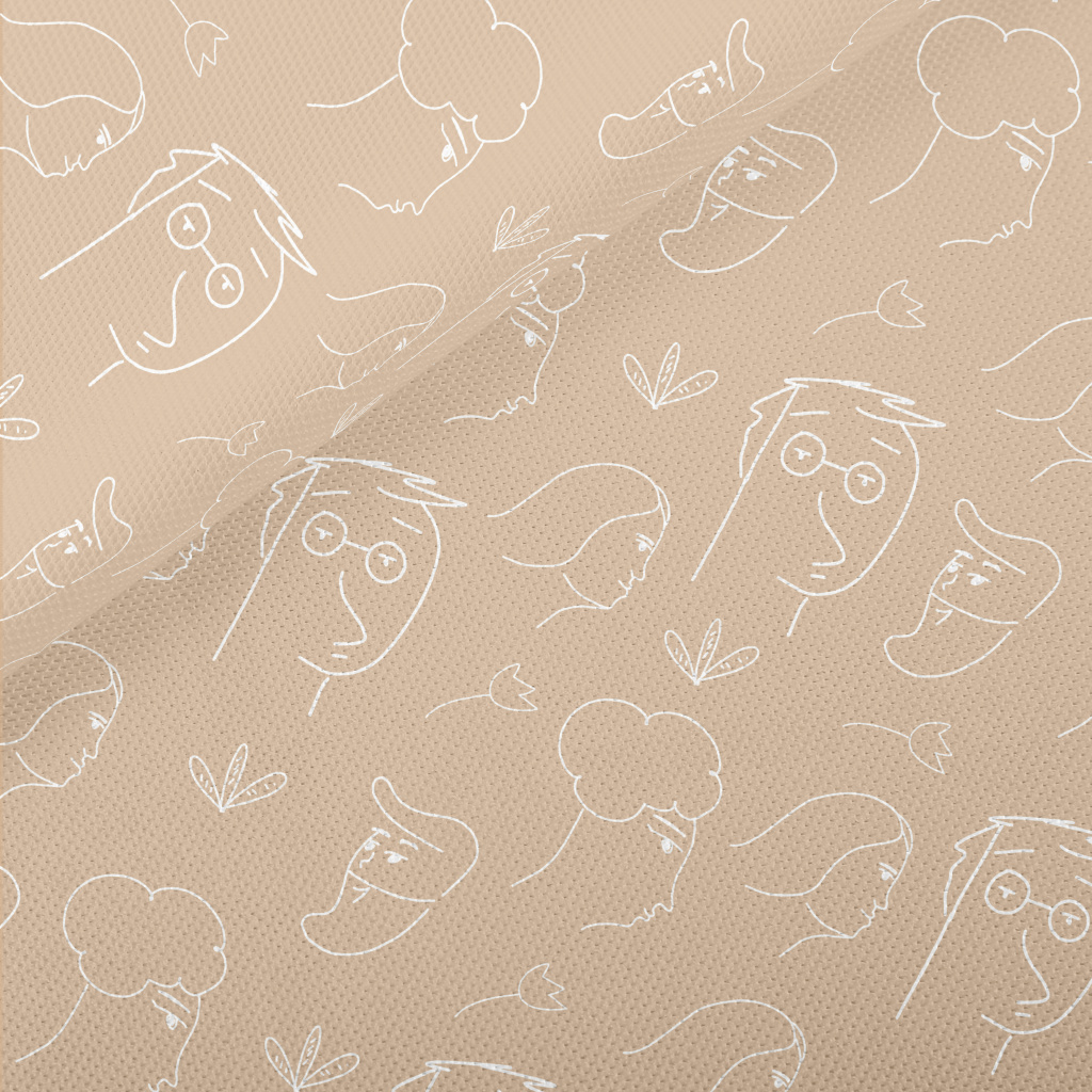 線條藝術人臉圖像高爾布(幅寬180公分)