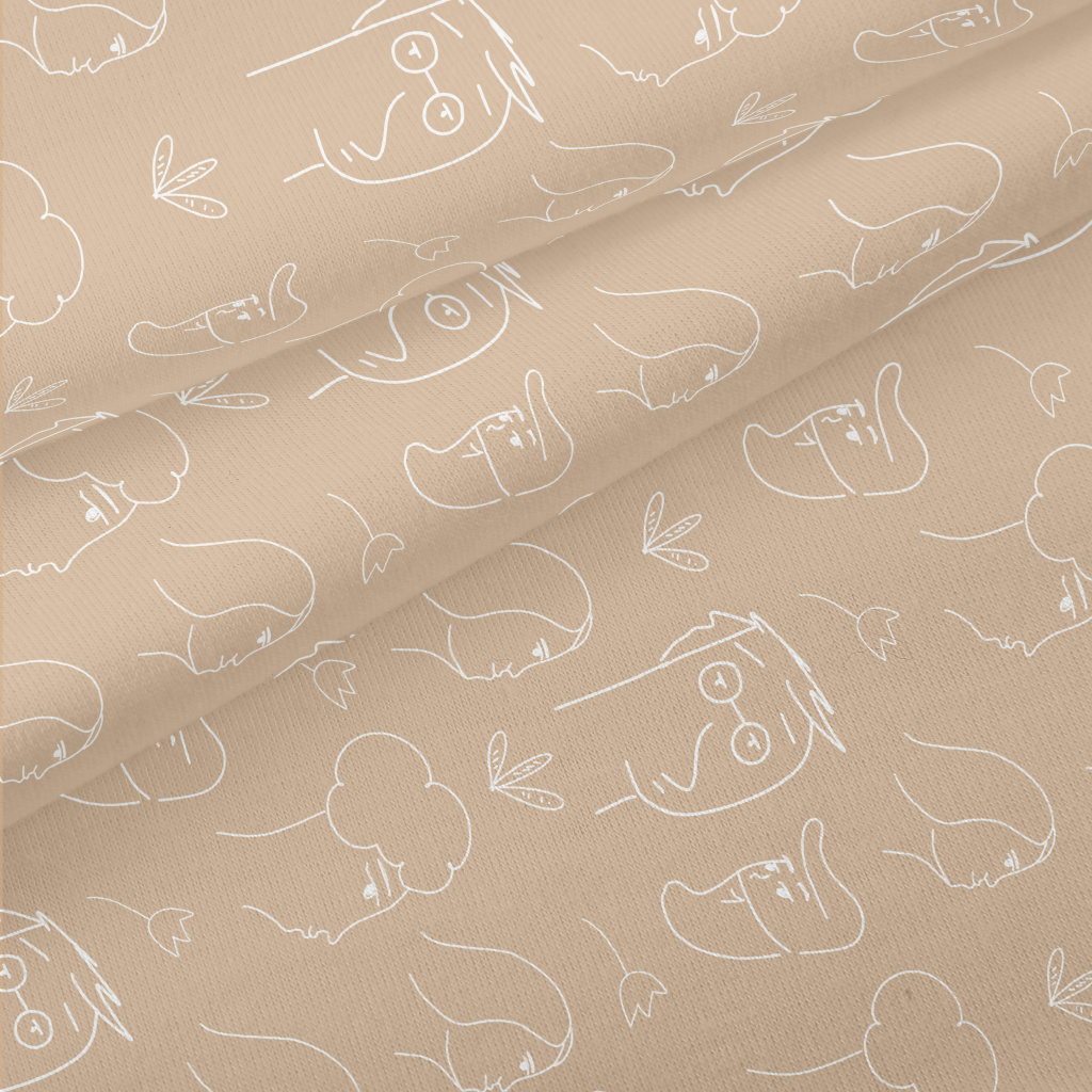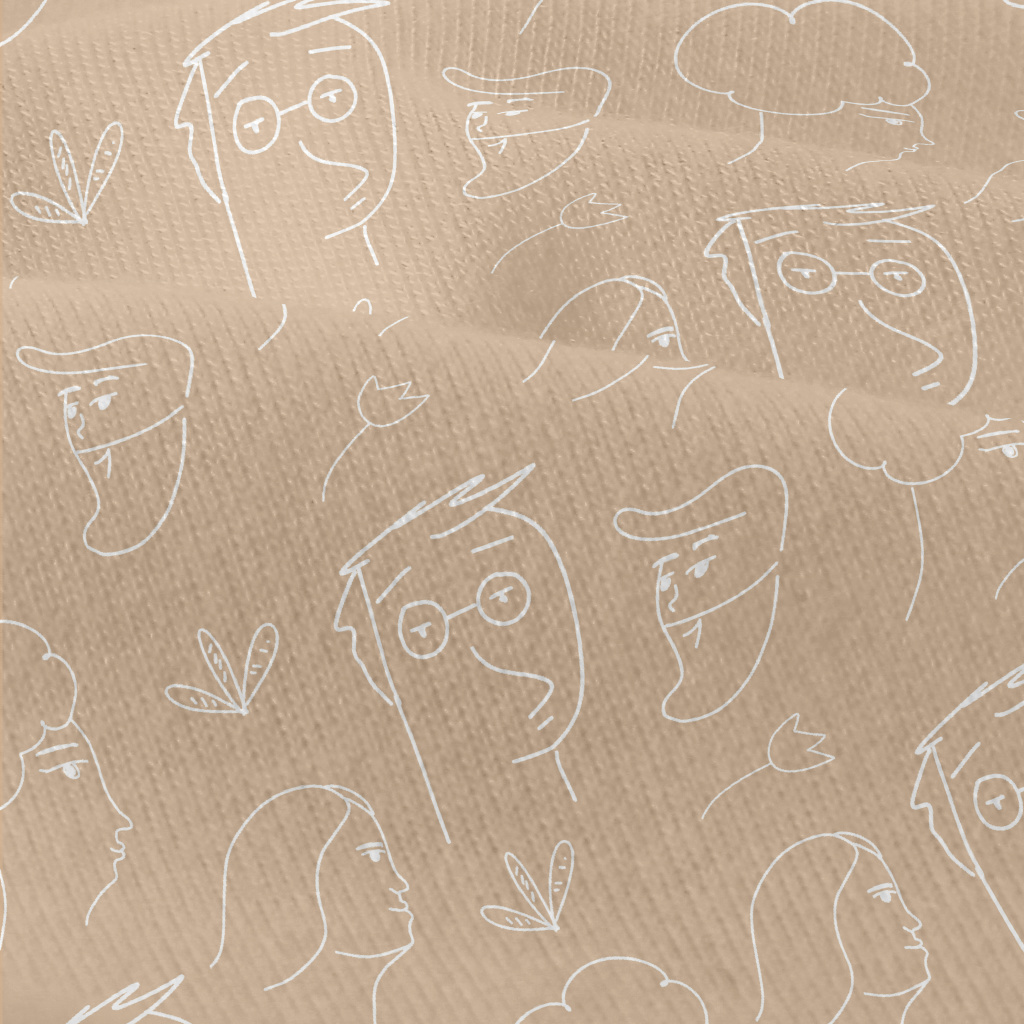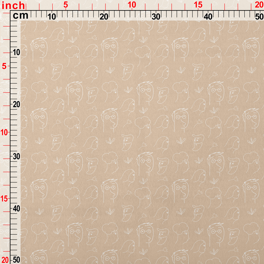 線條藝術人臉圖像仿棉布(幅寬150公分)