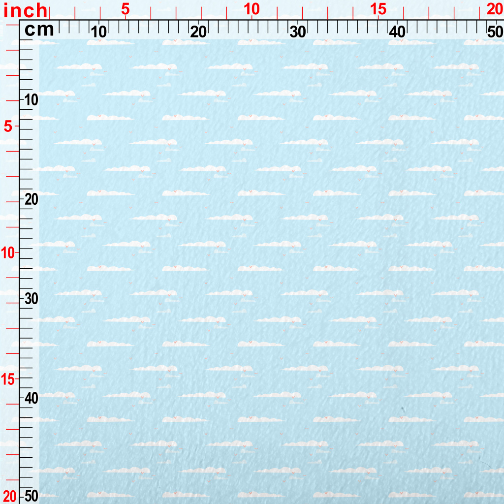 雲彩和藍天與飛鳥法蘭絨(幅寬150公分)