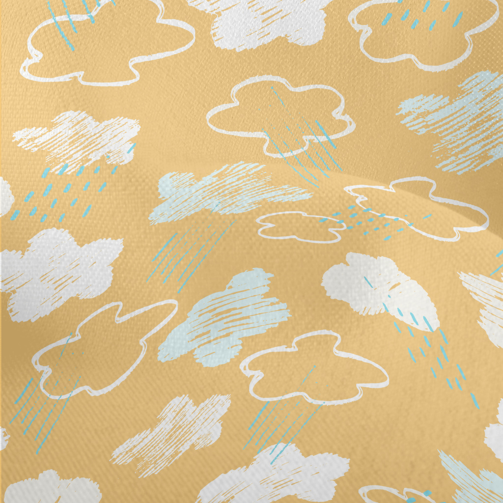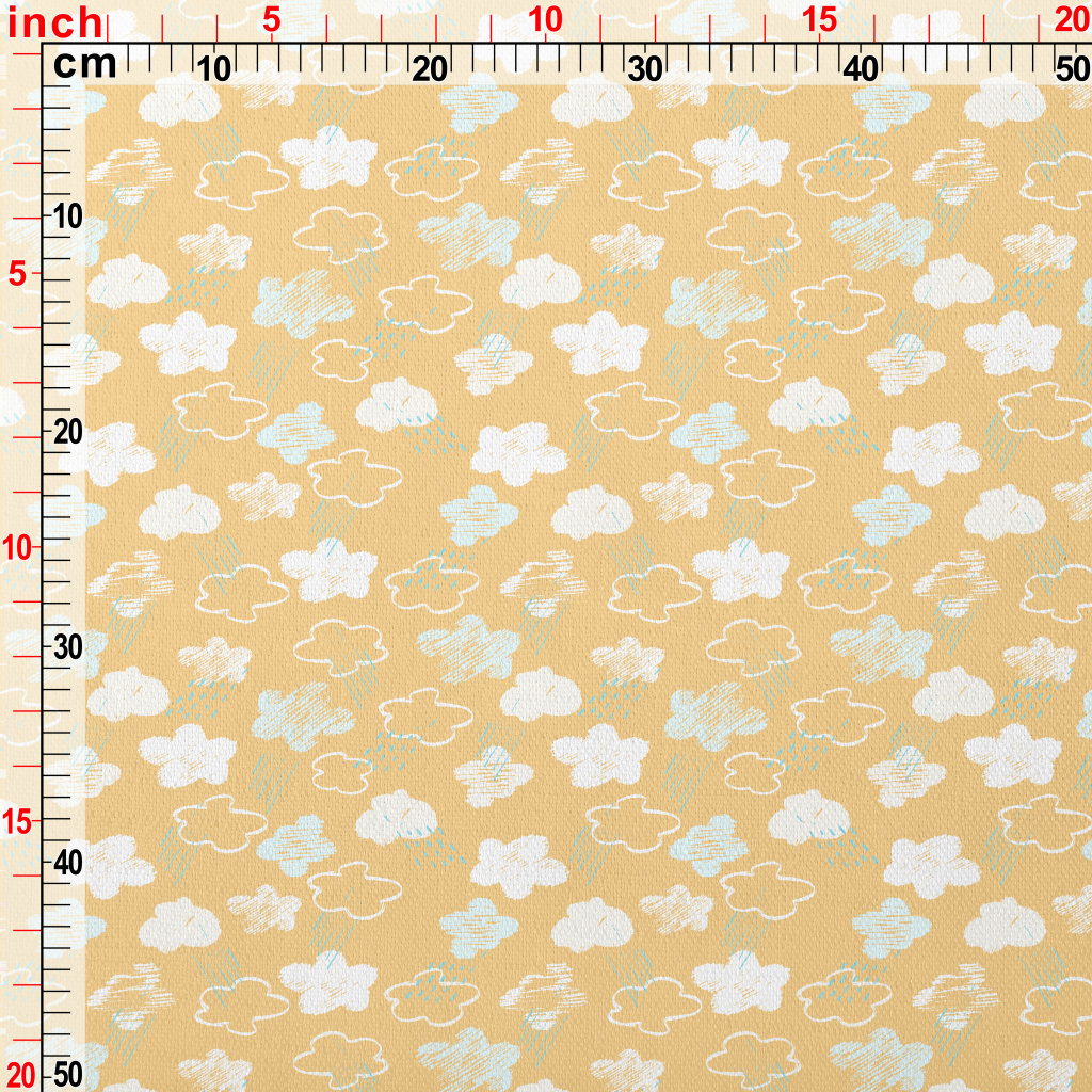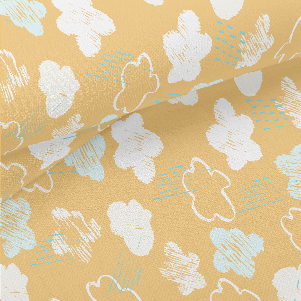 兒童繪畫白雲和雨雲竹節麻(幅寬150公分)