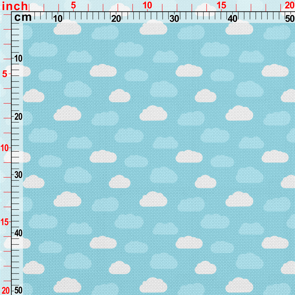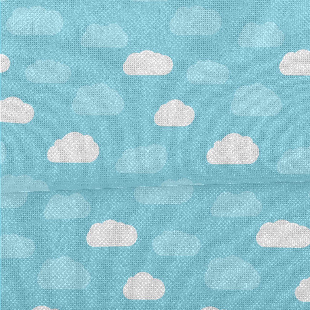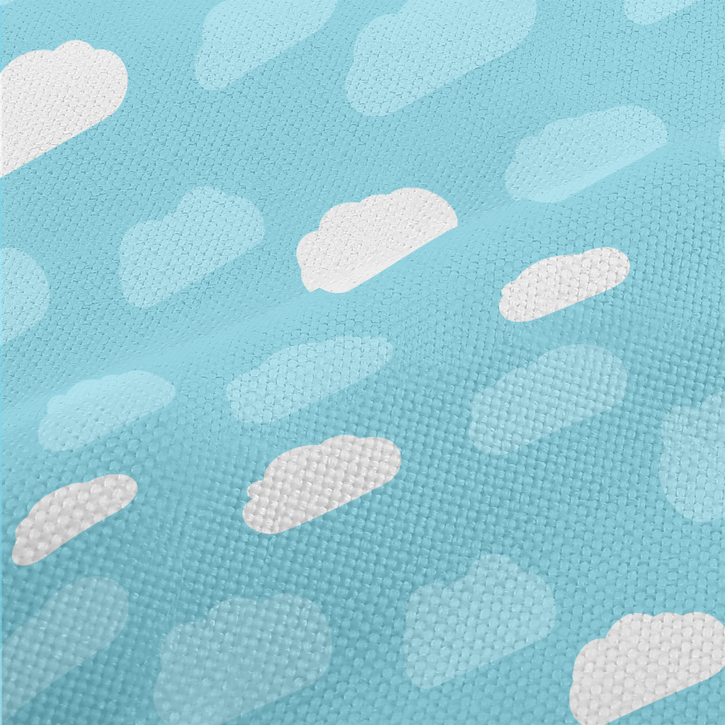 卡通藍色白色雲彩麻布(幅寬150公分)