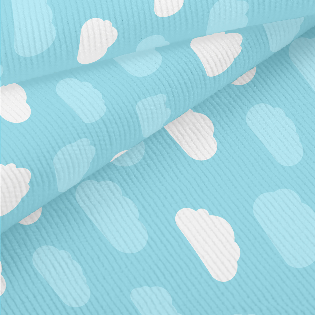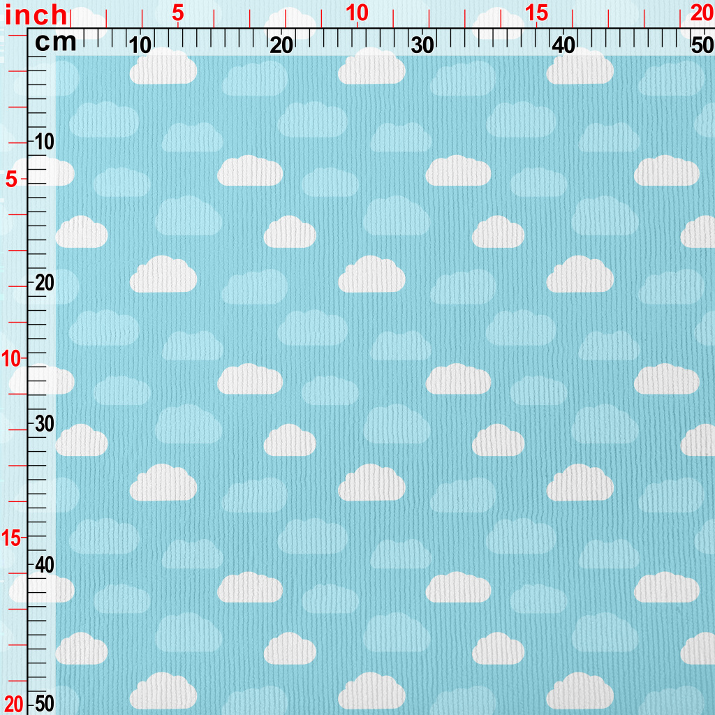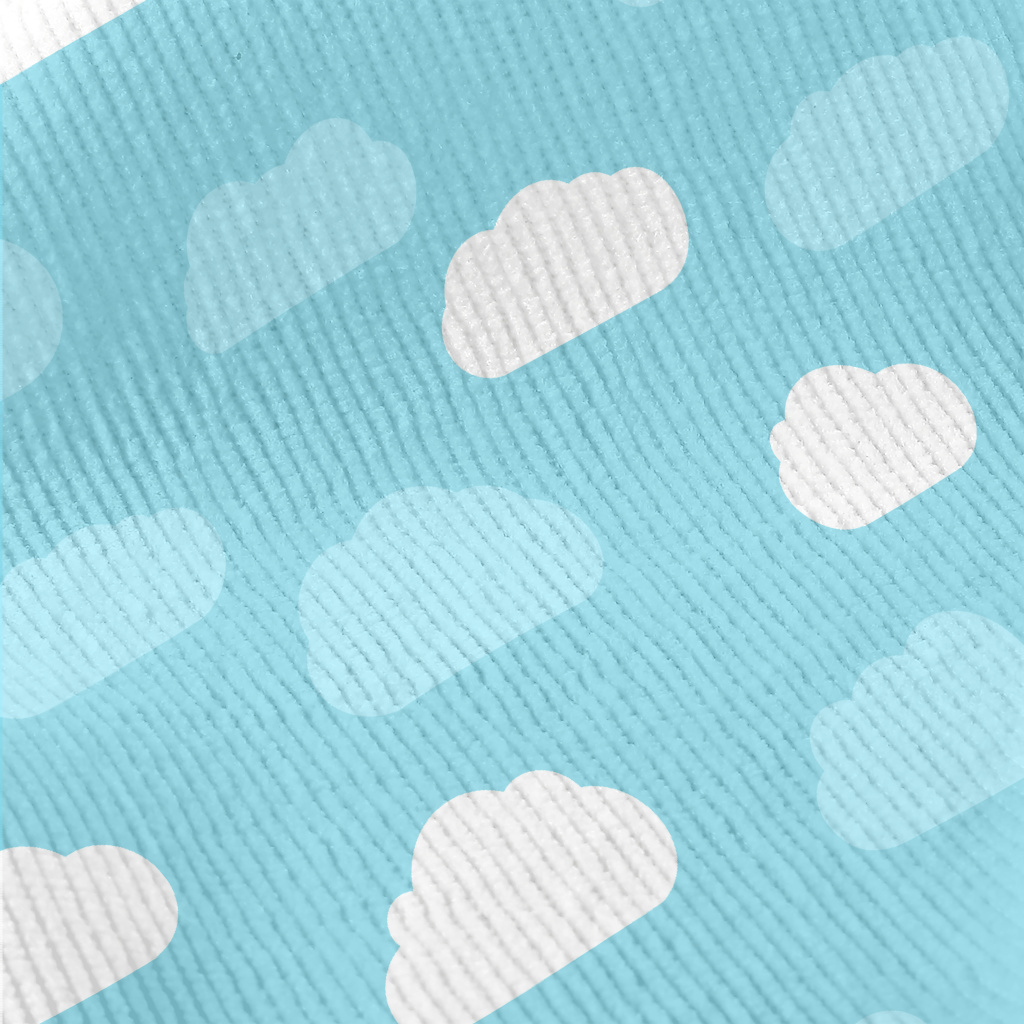 卡通藍色白色雲彩燈芯絨(幅寬150公分)