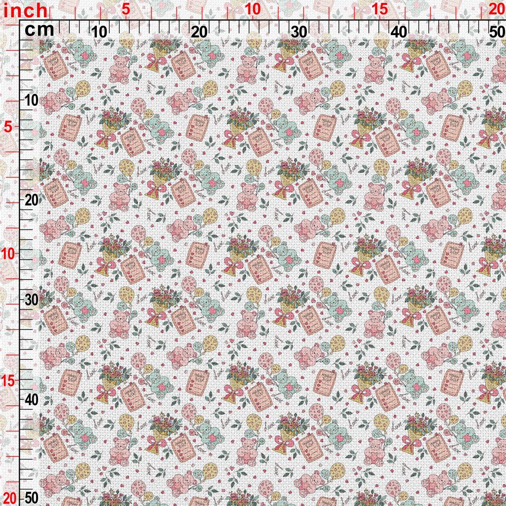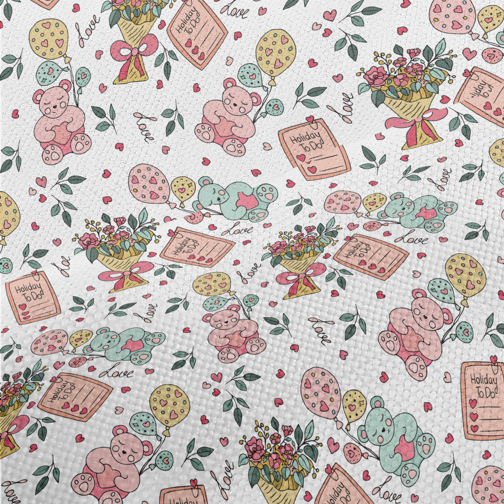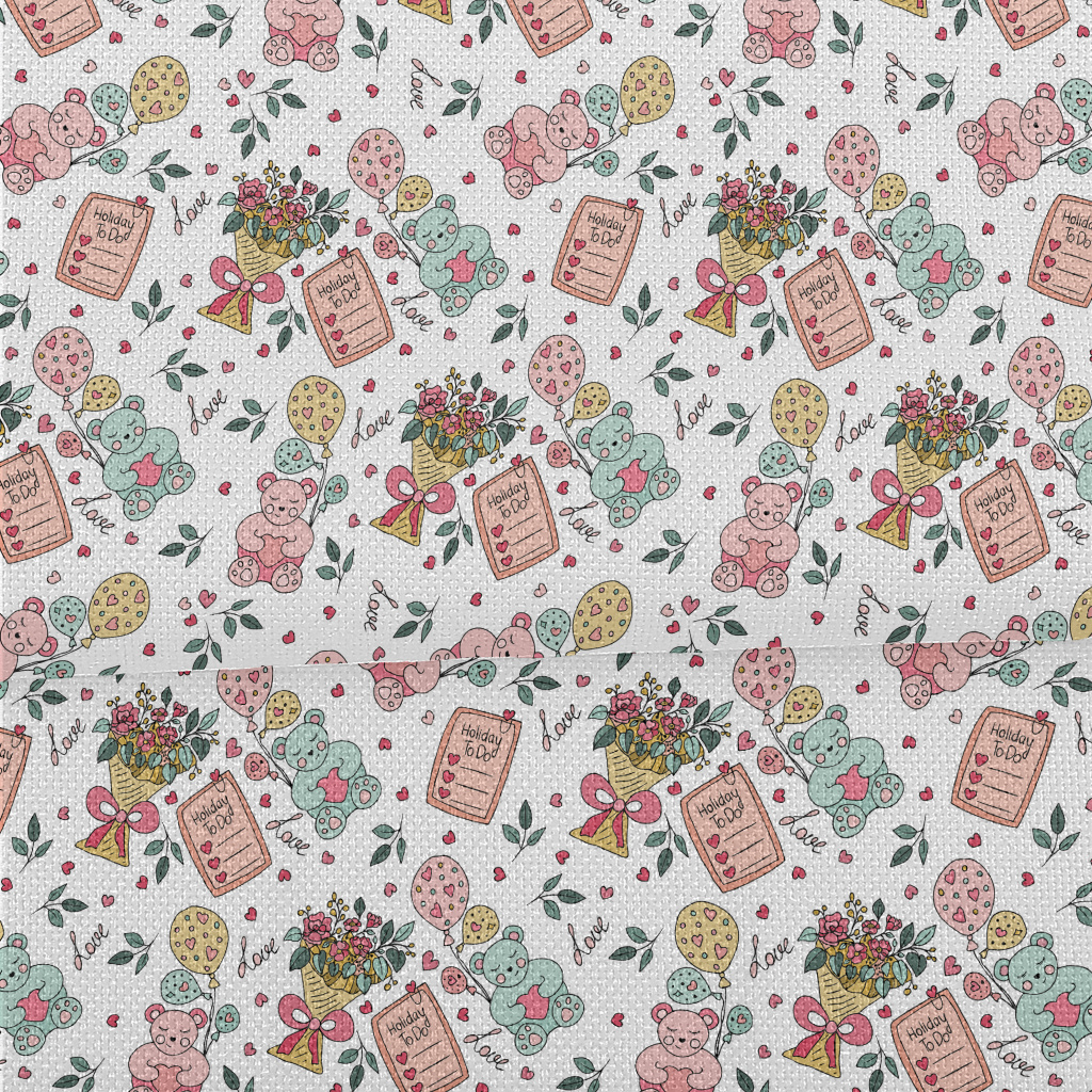泰迪熊氣球玫瑰花麻布(幅寬150公分)