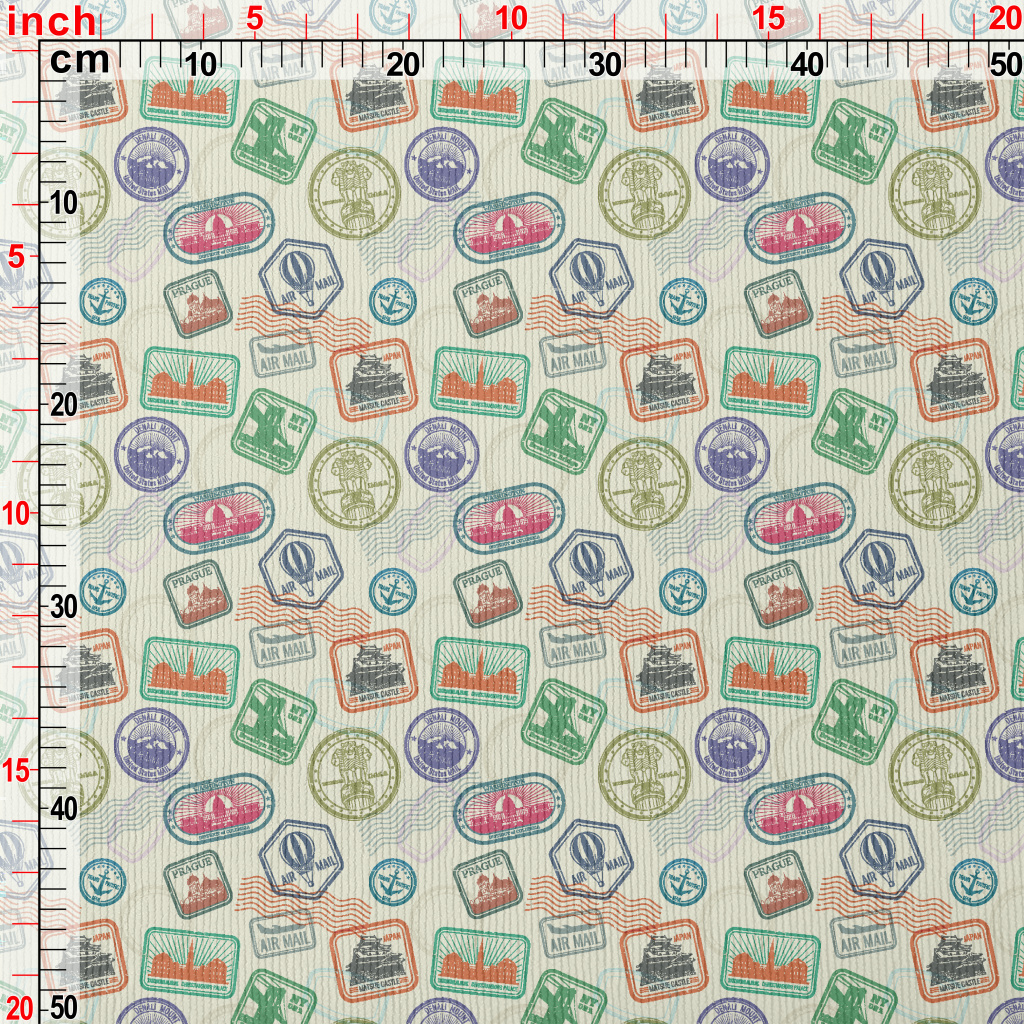 復古護照旅行郵票燈芯絨(幅寬150公分)