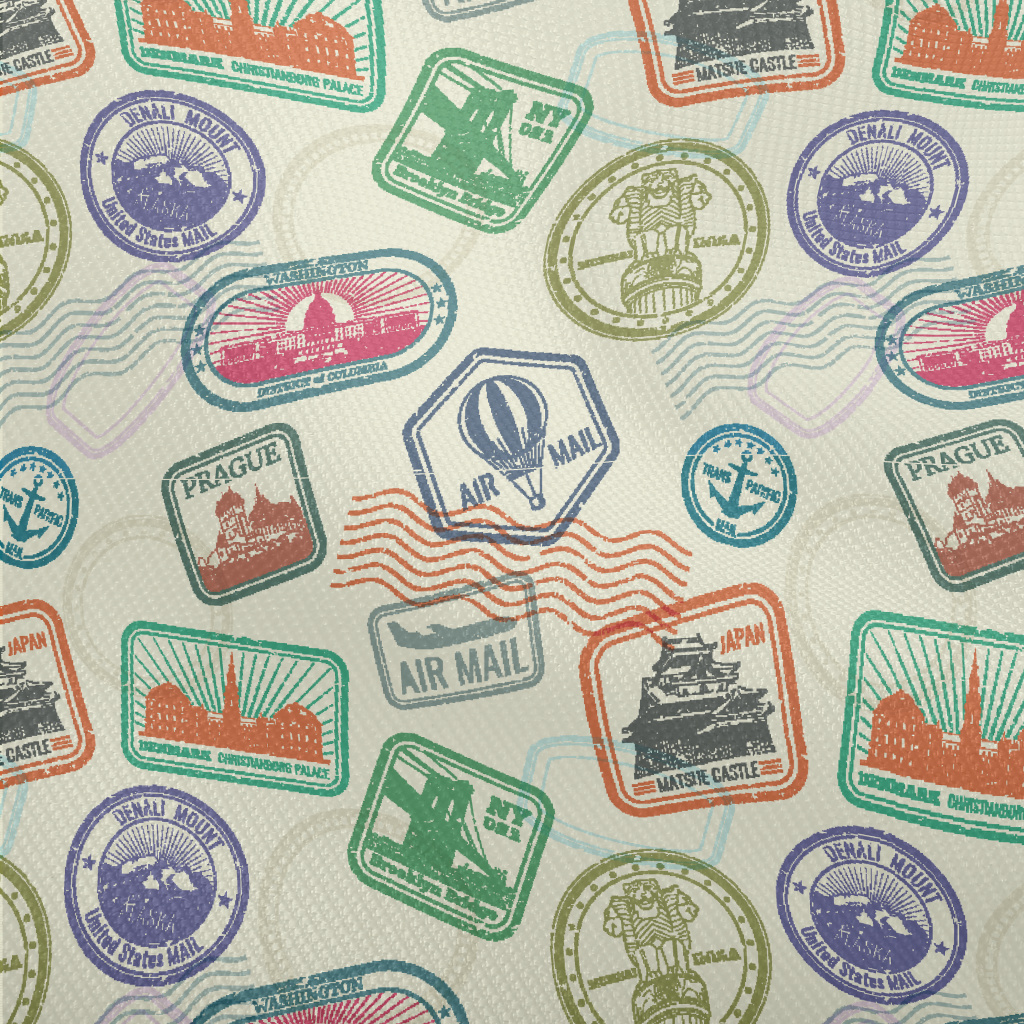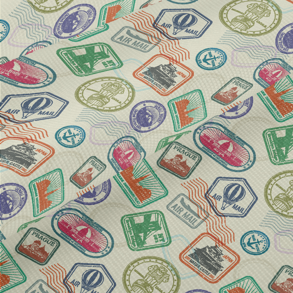 復古護照旅行郵票雙斜布(幅寬150公分)