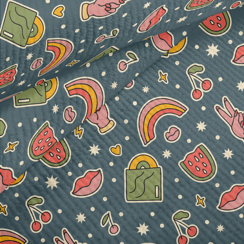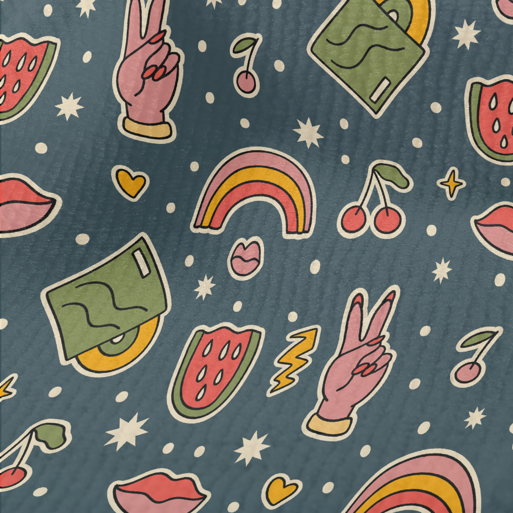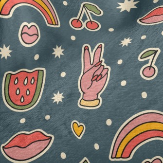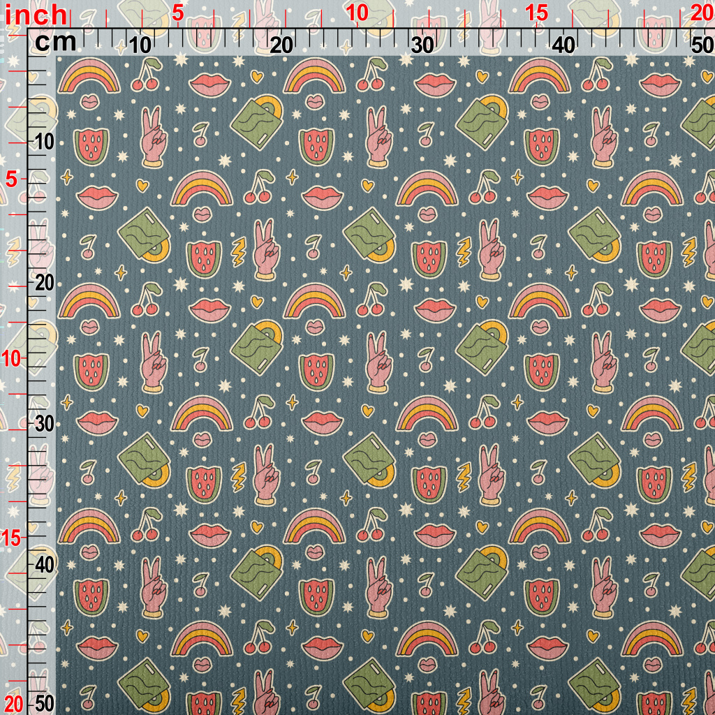 彩虹手嘴巴櫻桃圖案毛巾布(幅寬160公分)