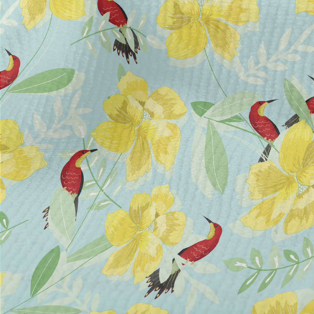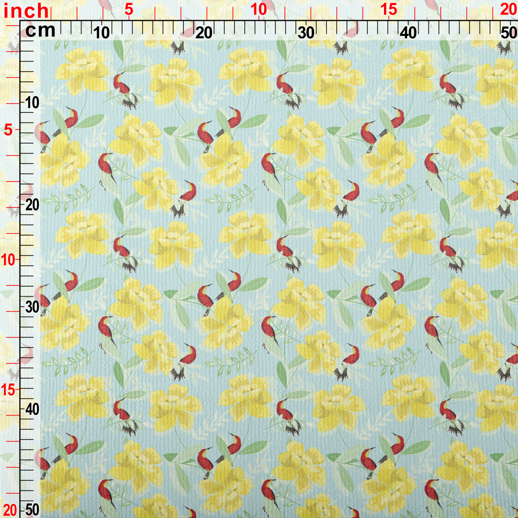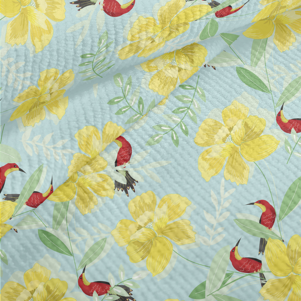 花卉綠葉和蜂鳥毛巾布(幅寬160公分)