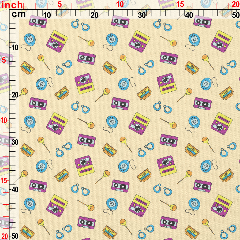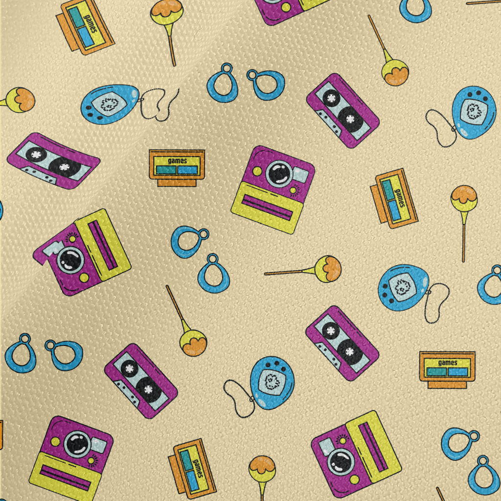 彩色復古卡帶相機電子雞帆布(幅寬150公分)