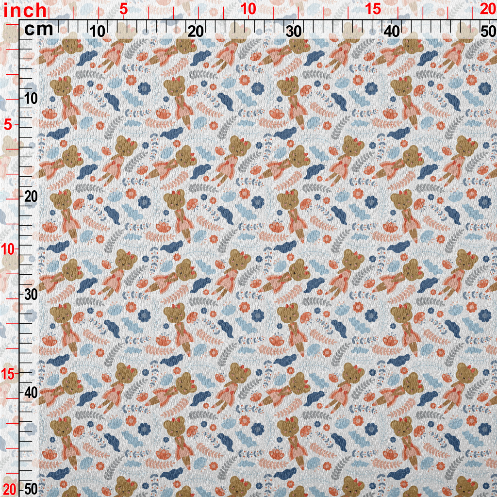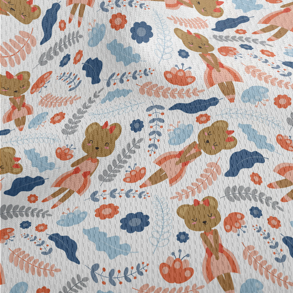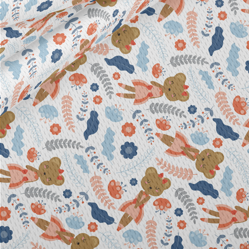 可愛熊和花朵鳥眼布(幅寬160公分)
