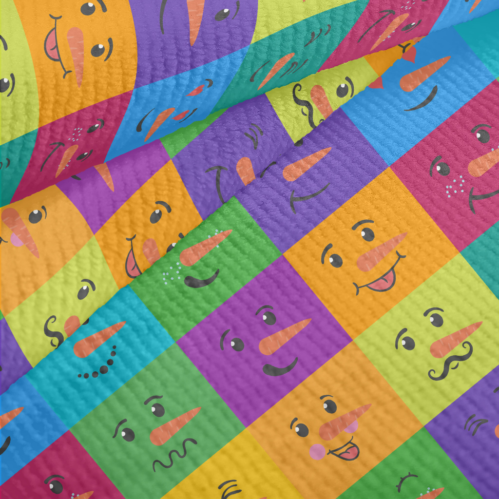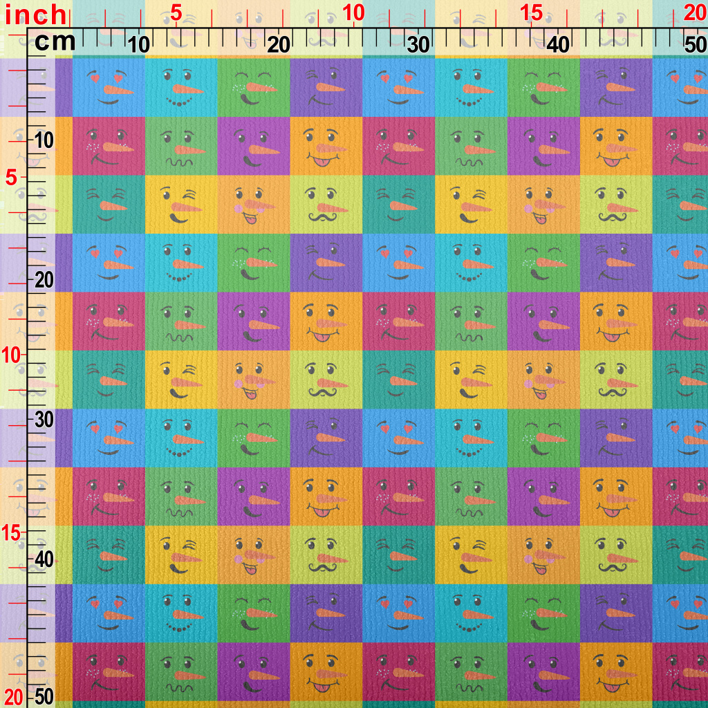 可愛雪人表情格子毛巾布(幅寬160公分)