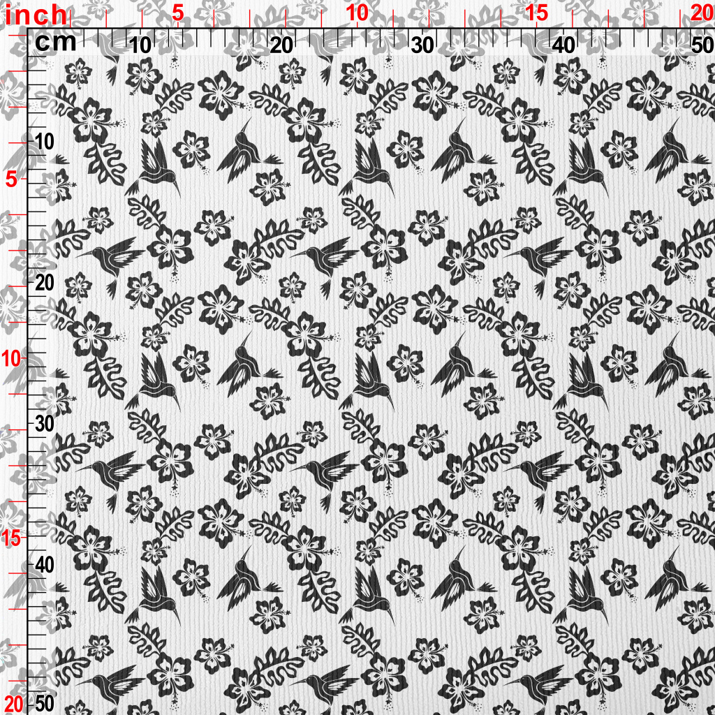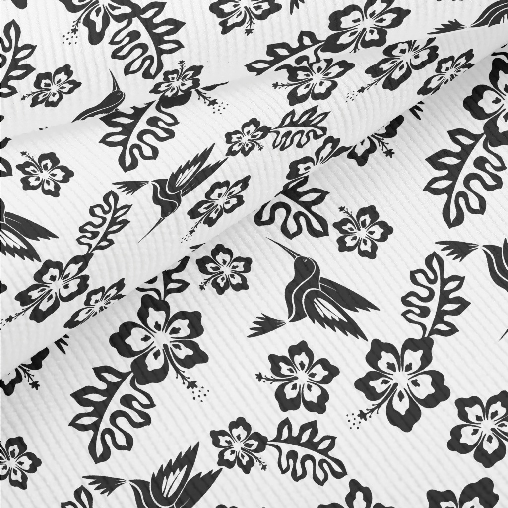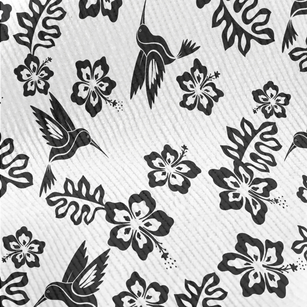 黑白芙蓉花與蜂鳥燈芯絨(幅寬150公分)