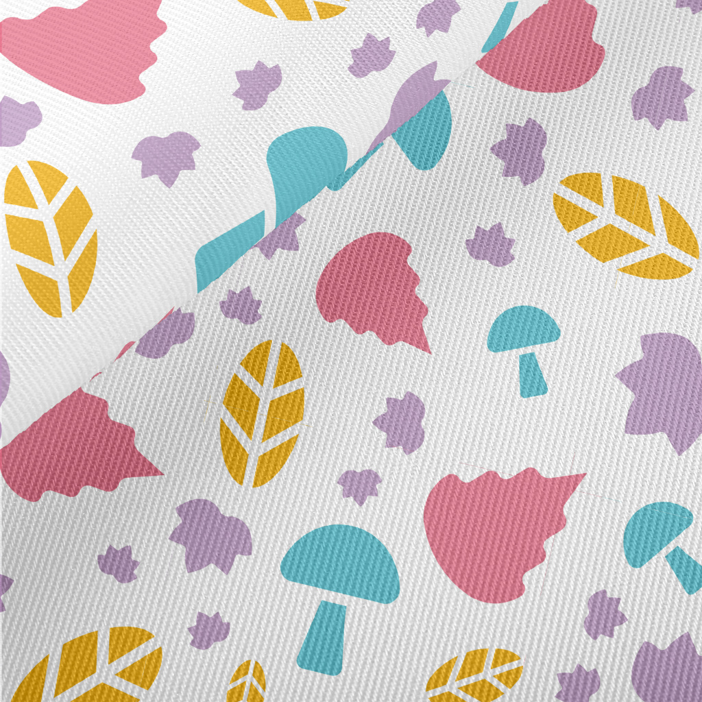 藍色香菇與彩色葉子斜紋布(幅寬150公分)