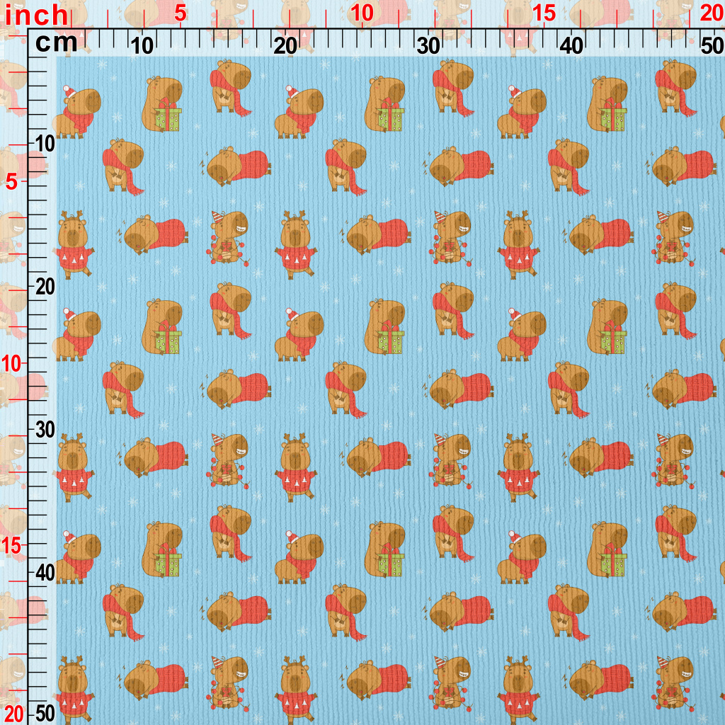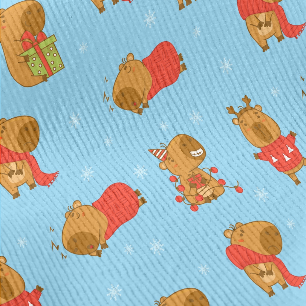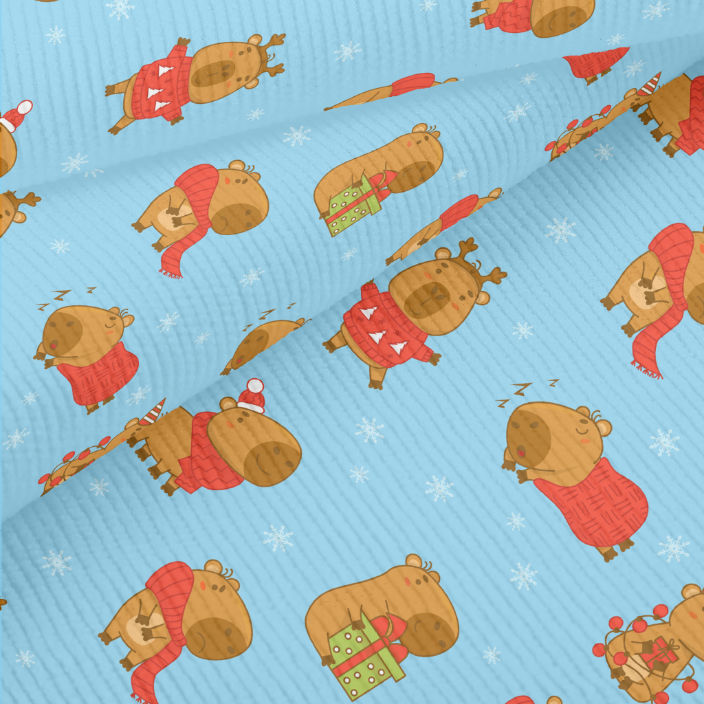 開心水豚過聖誕燈芯絨(幅寬150公分)