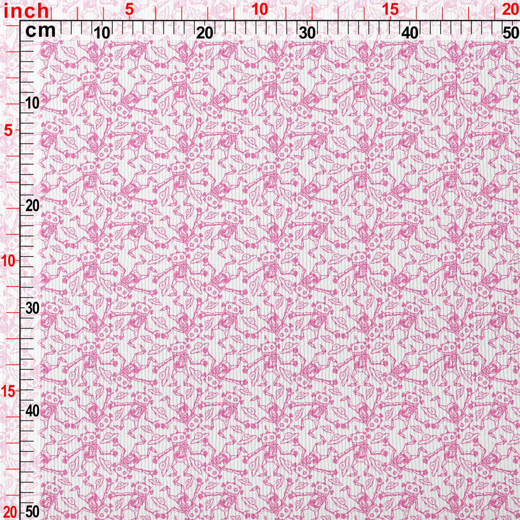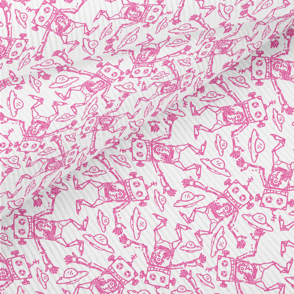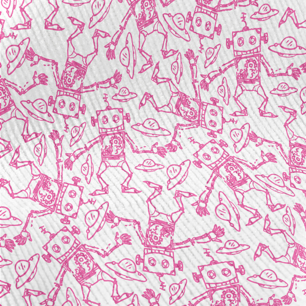 粉色塗鴉機器人和飛碟燈芯絨(幅寬150公分)