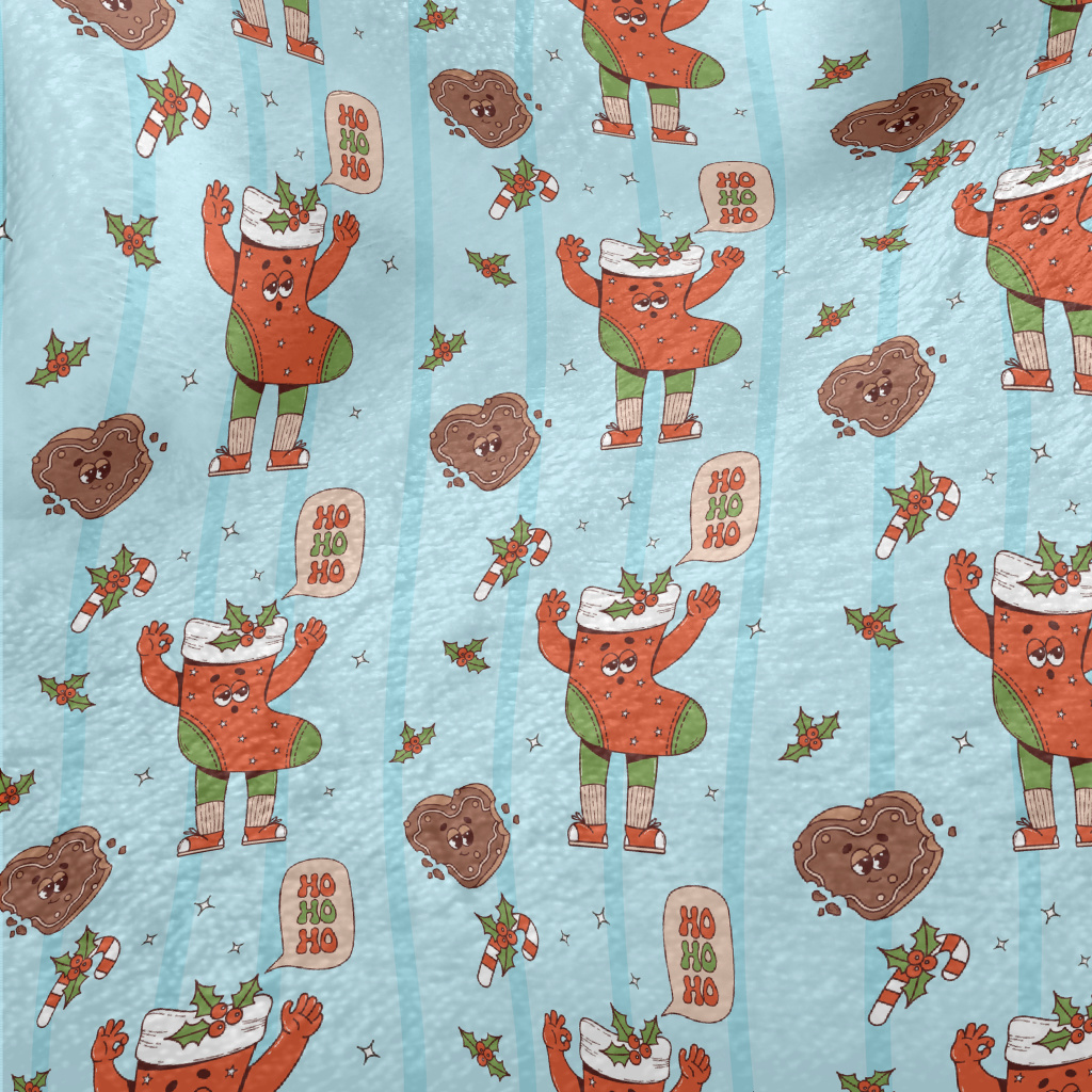 聖誕襪子和餅乾拐杖糖法蘭絨(幅寬150公分)