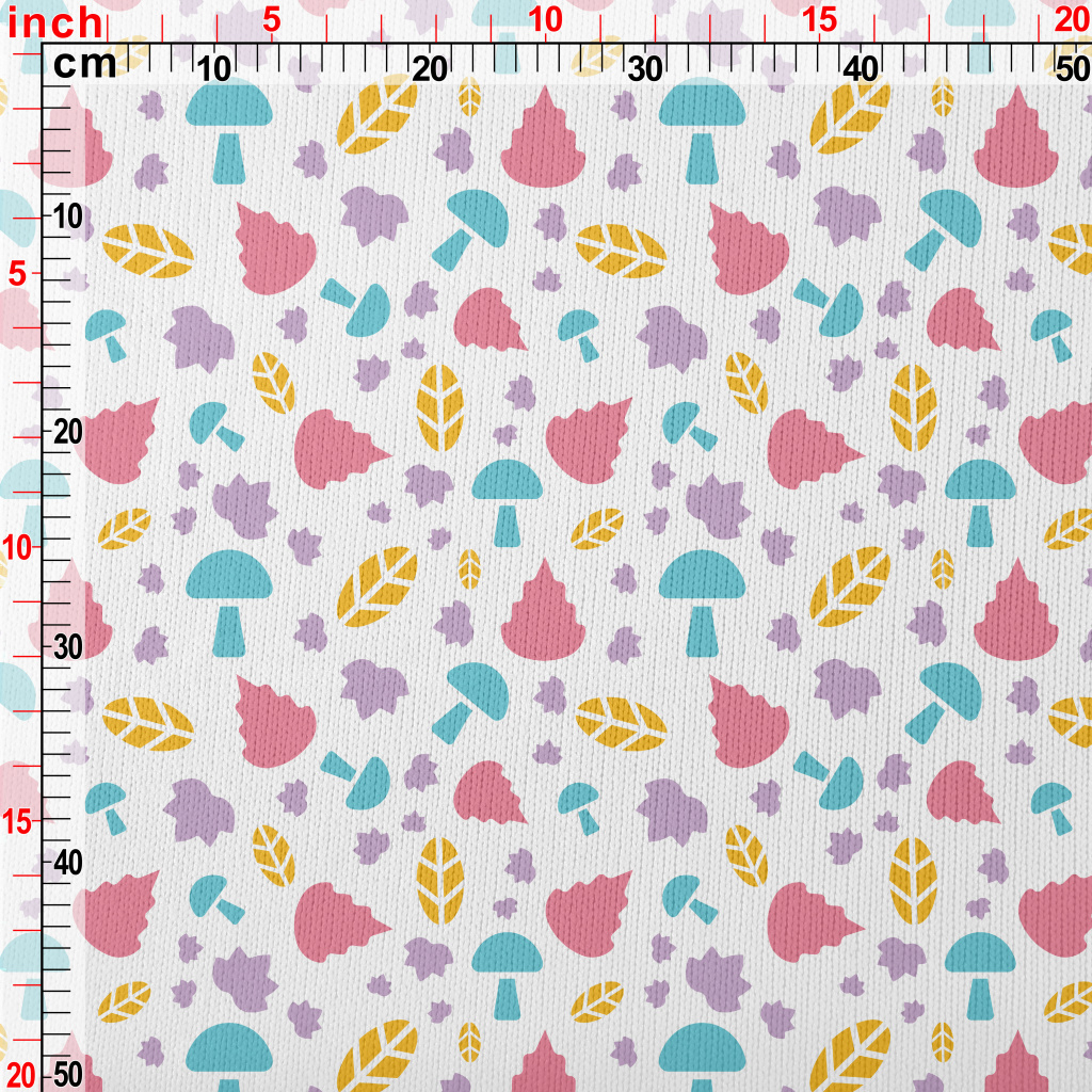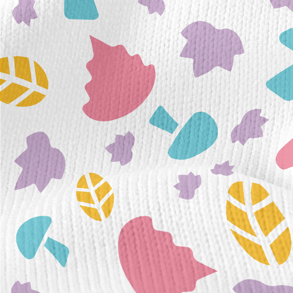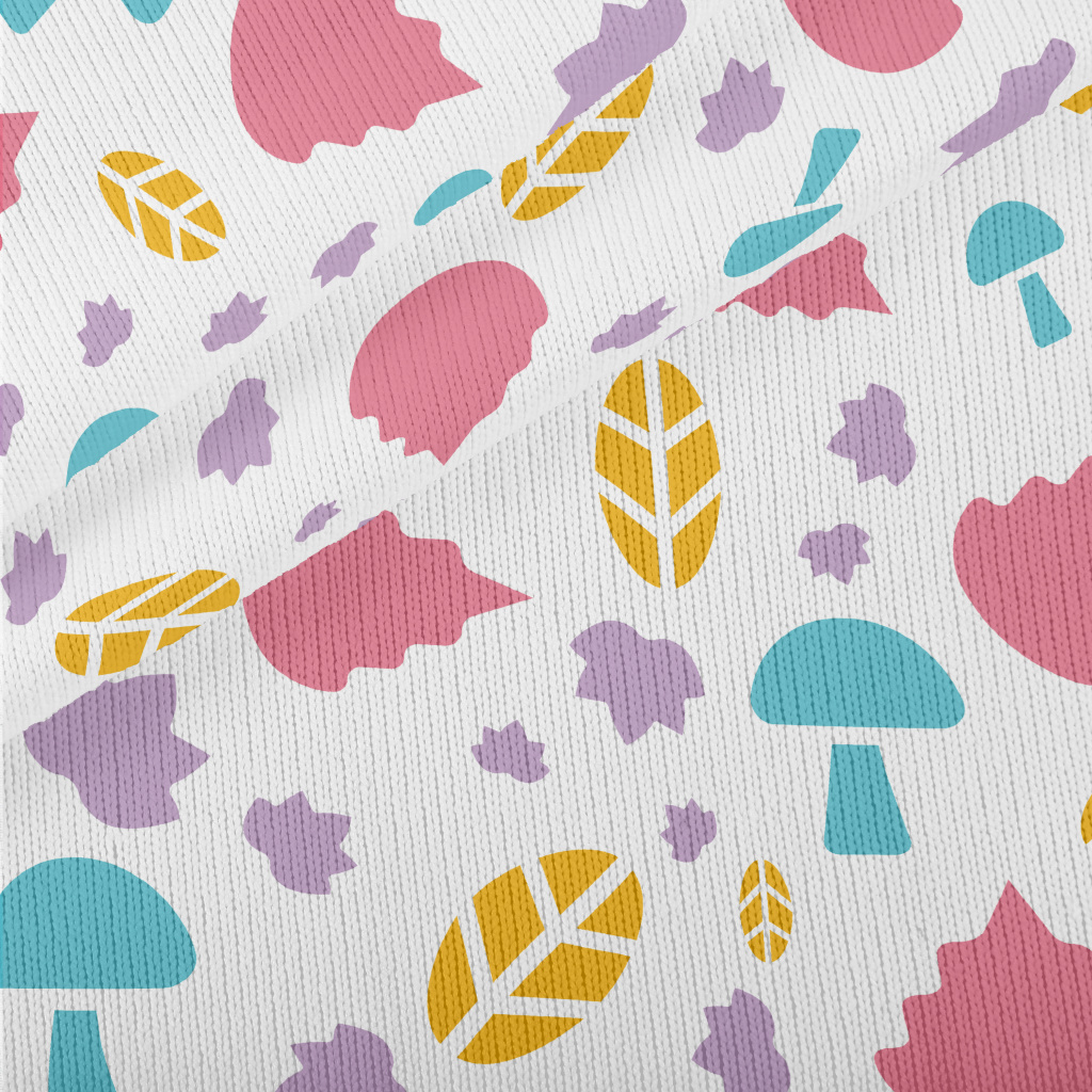 藍色香菇與彩色葉子仿毛衣布(幅寬150公分)