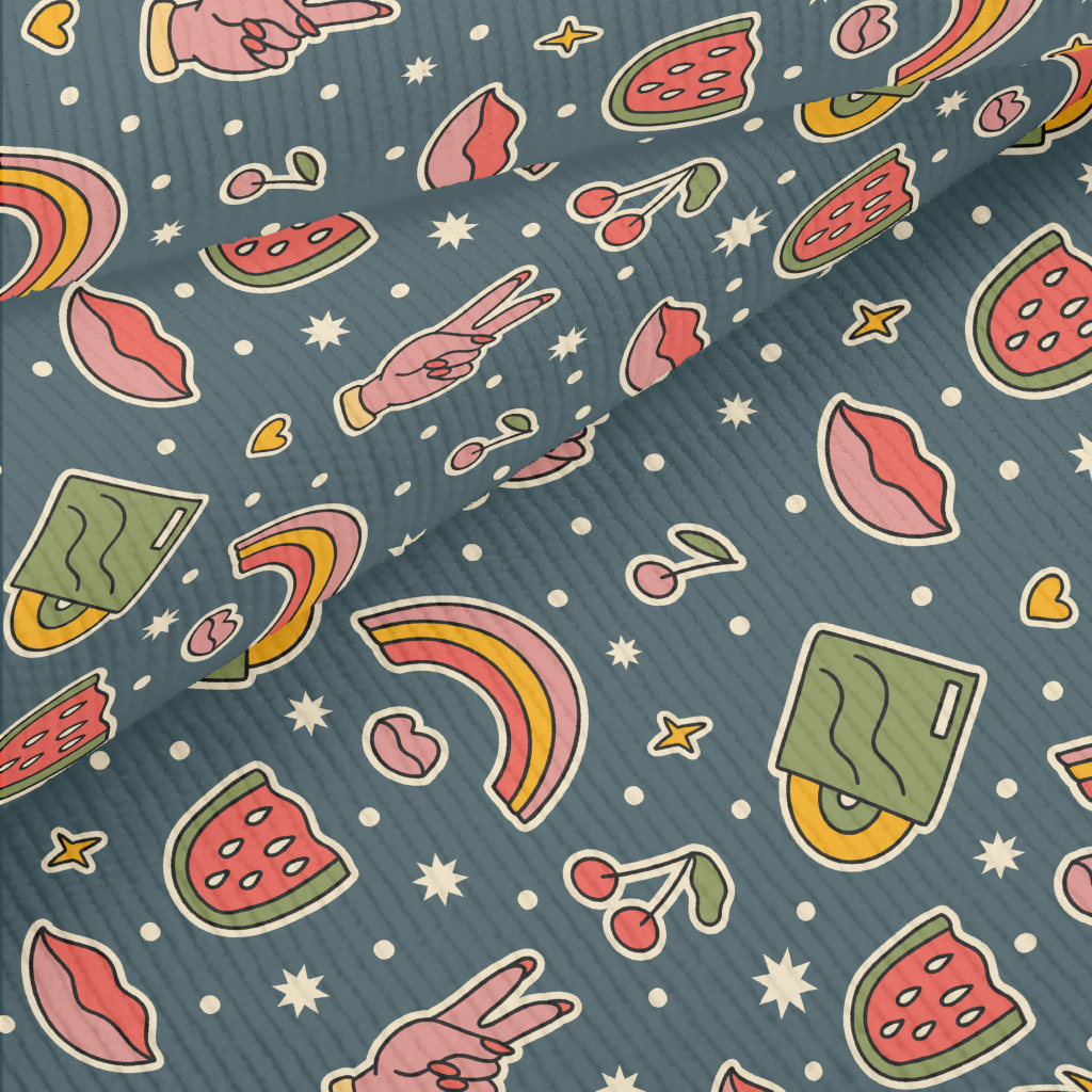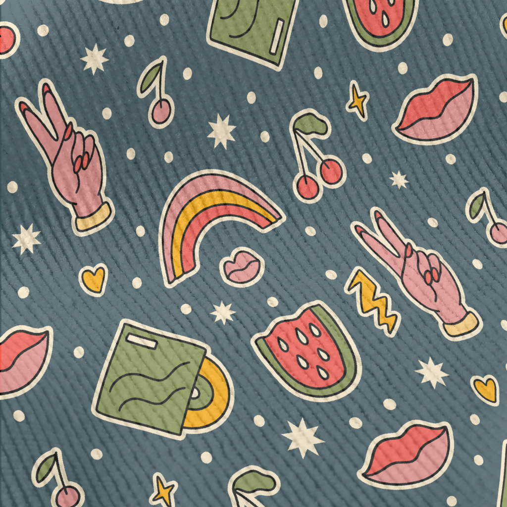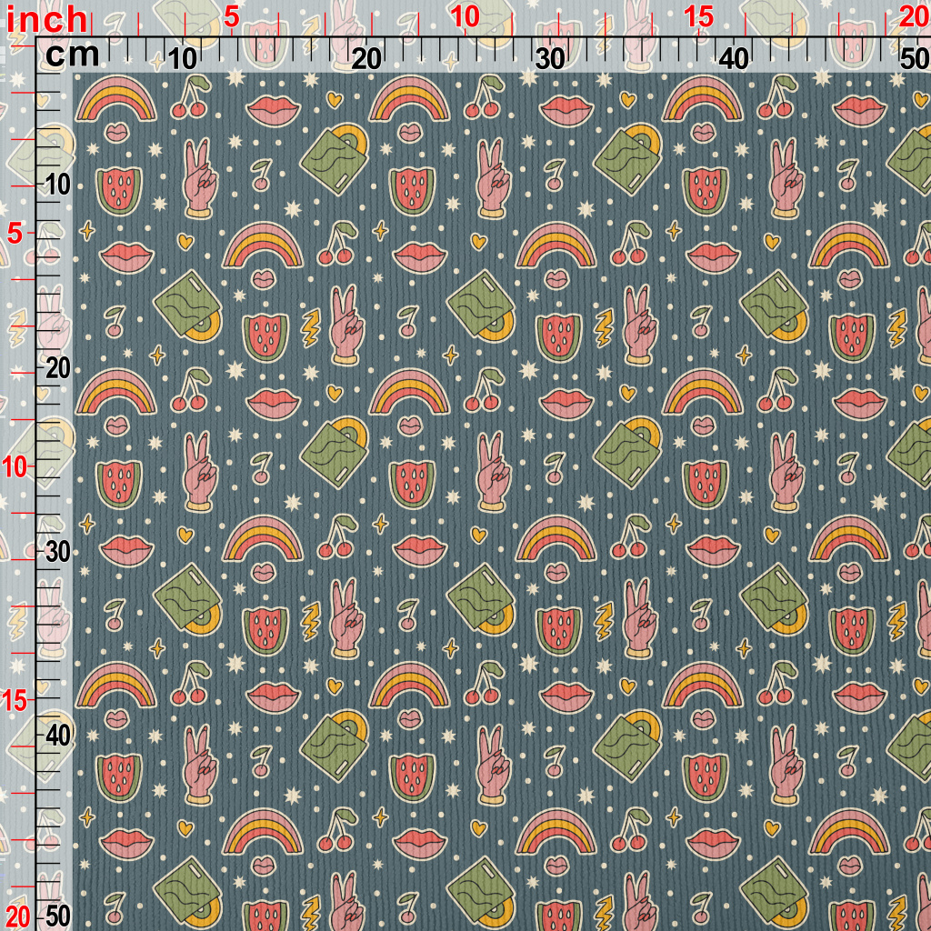 彩虹手嘴巴櫻桃圖案燈芯絨(幅寬150公分)