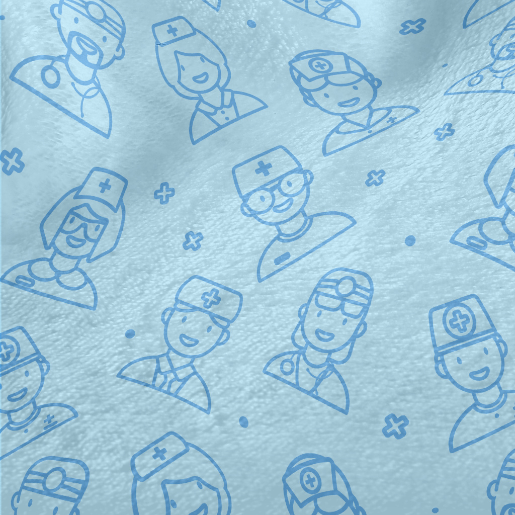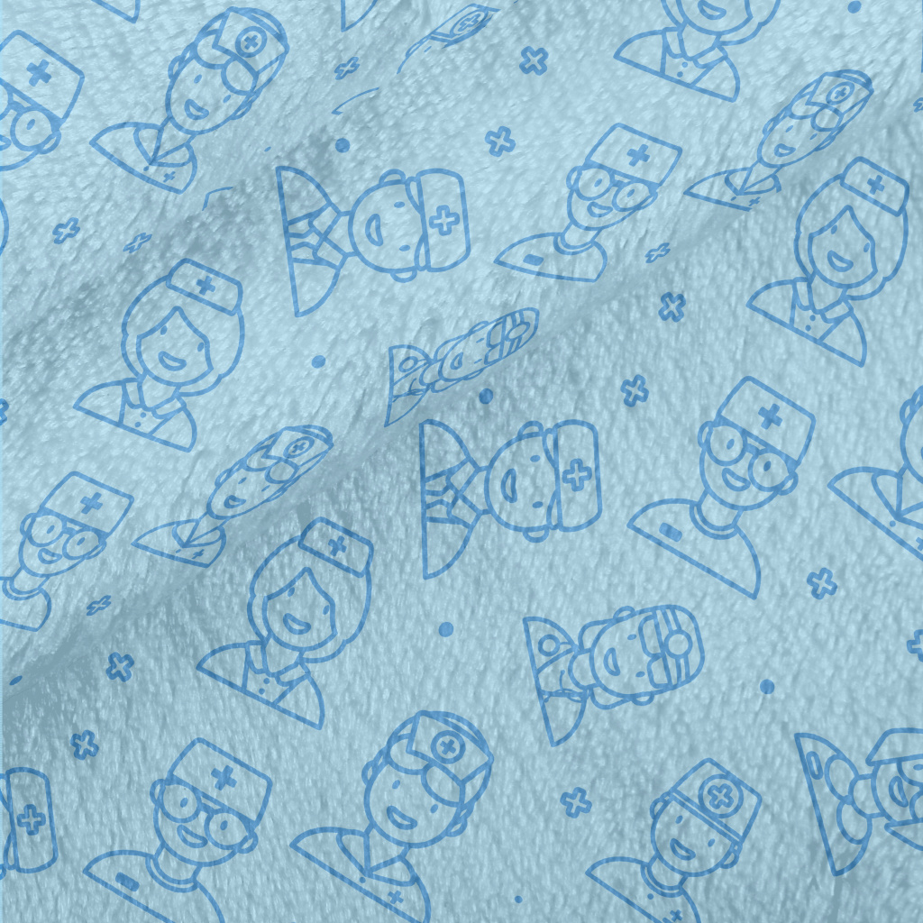 藍色線條護士和醫生法蘭絨(幅寬150公分)