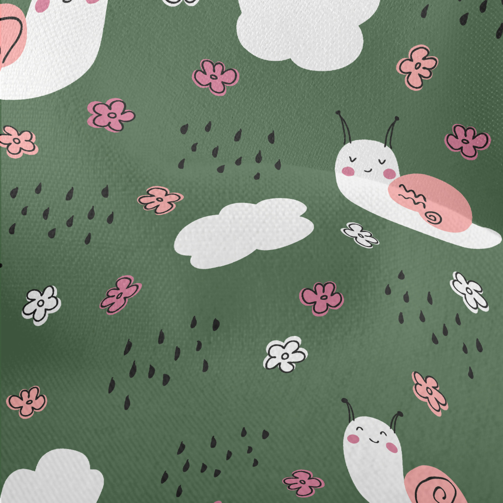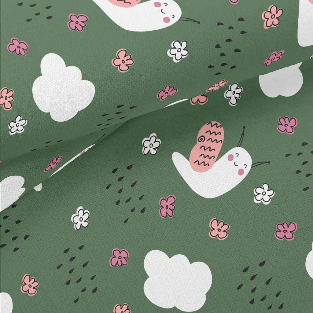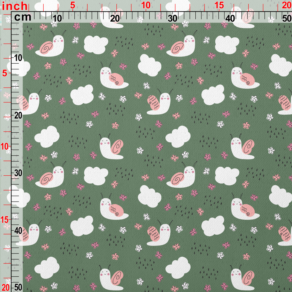 塗鴉可愛蝸牛和花朵竹節麻(幅寬150公分)