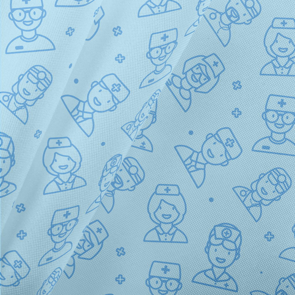 藍色線條護士和醫生春亞紡(幅寬160公分)