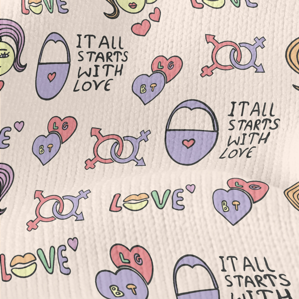 彩虹同性愛心圖案仿毛衣布(幅寬150公分)