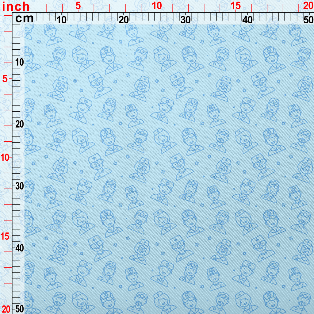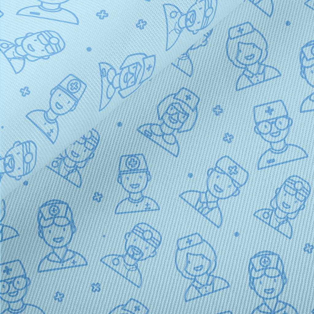 藍色線條護士和醫生厚棉布(幅寬150公分)