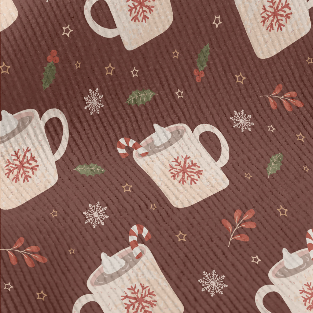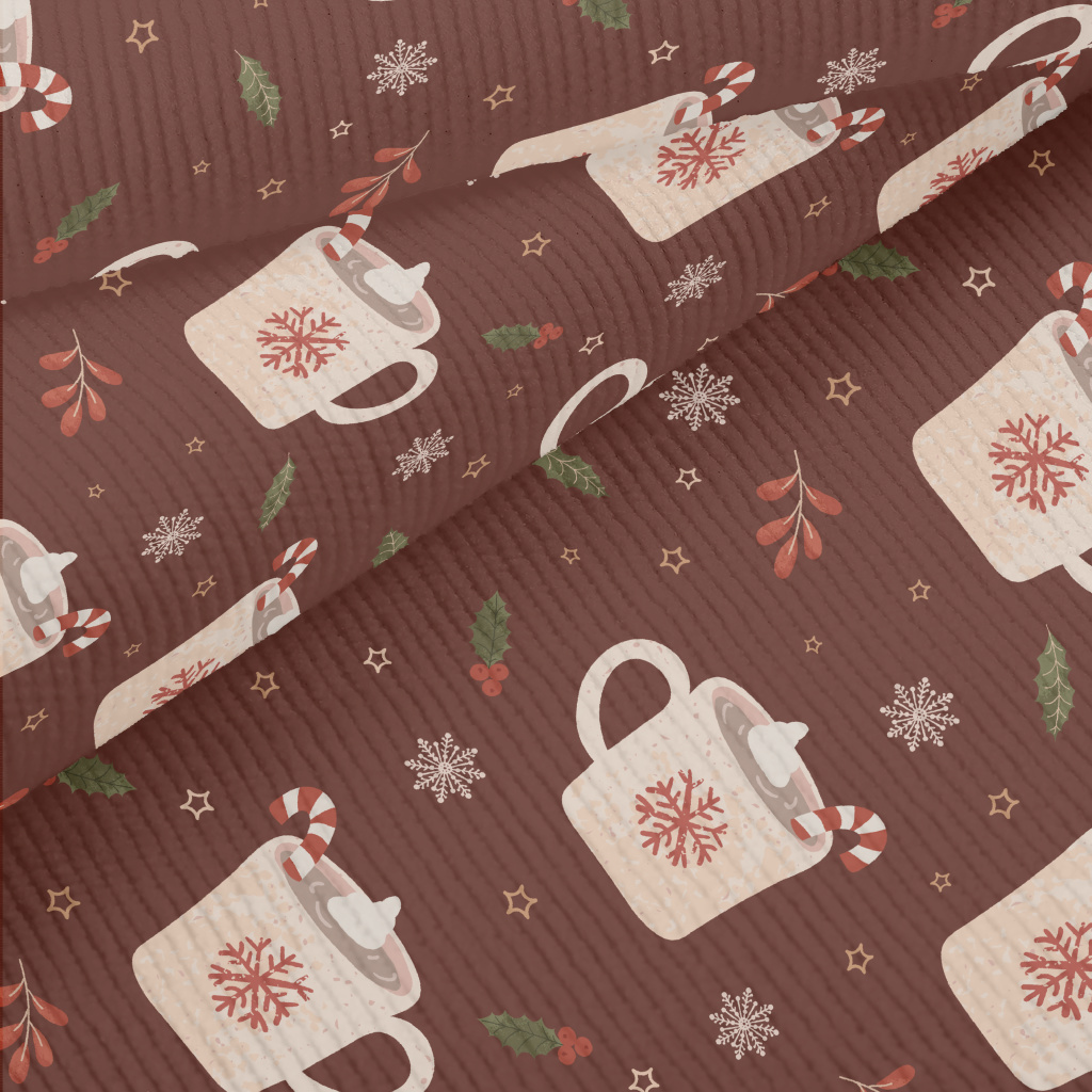 聖誕節飲品和雪花燈芯絨(幅寬150公分)