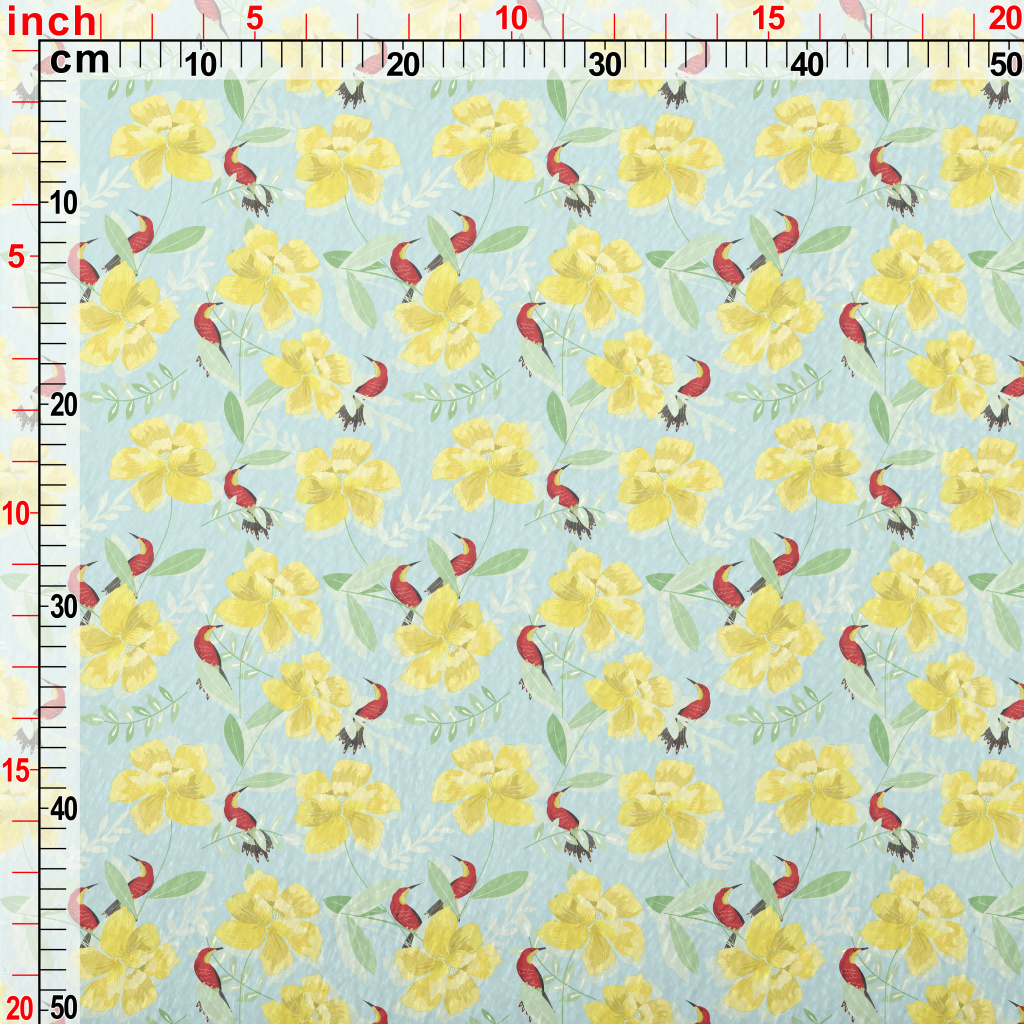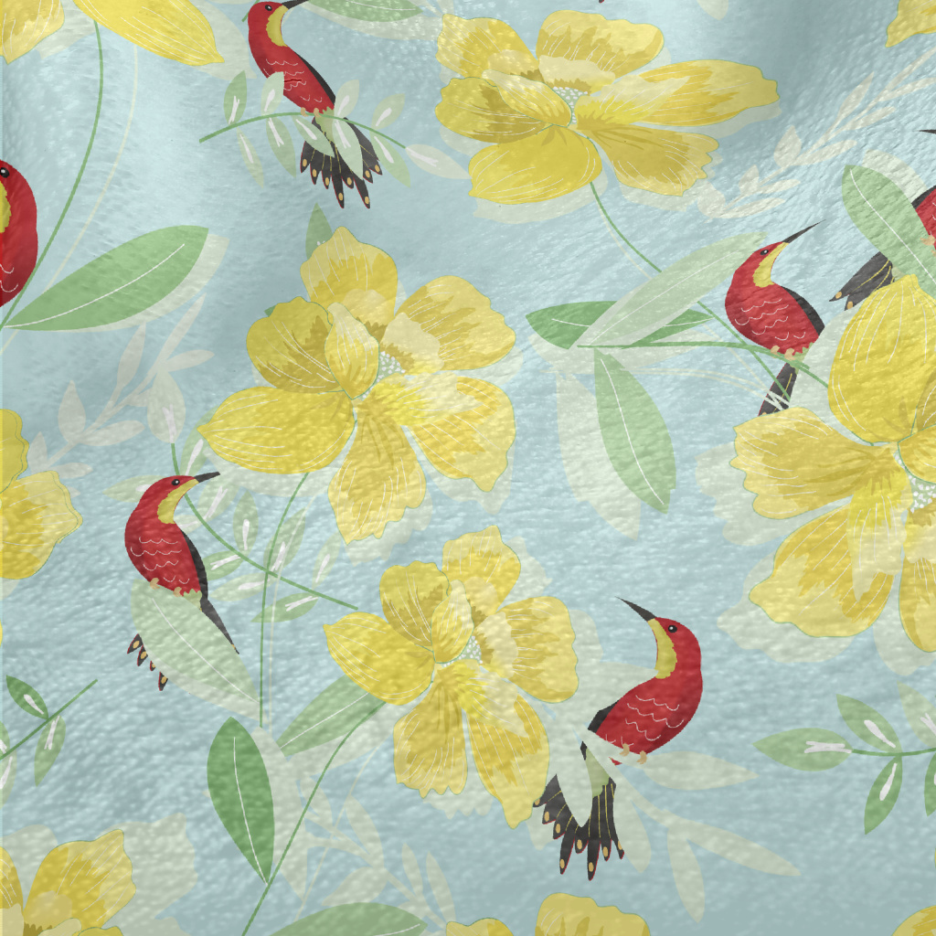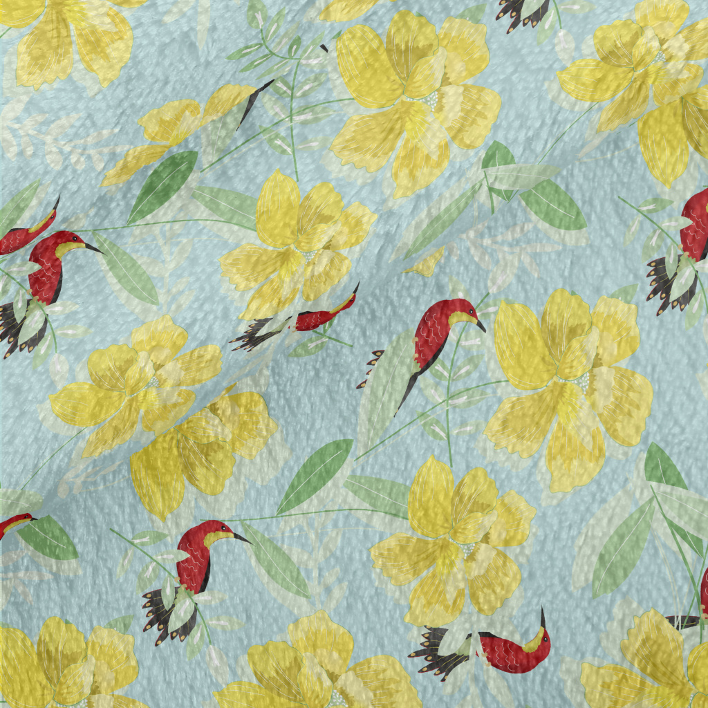 花卉綠葉和蜂鳥法蘭絨(幅寬150公分)
