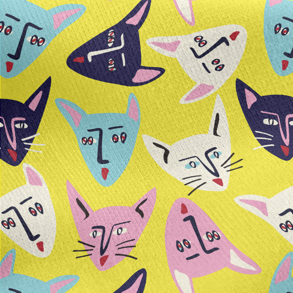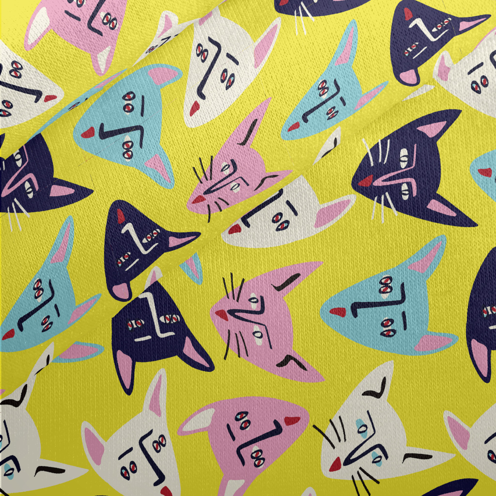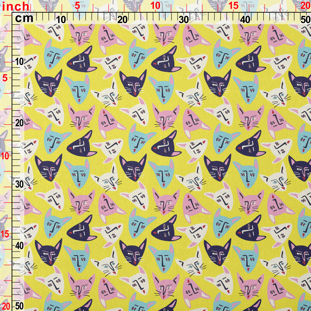 抽象彩色貓咪刷毛布(幅寬150公分)