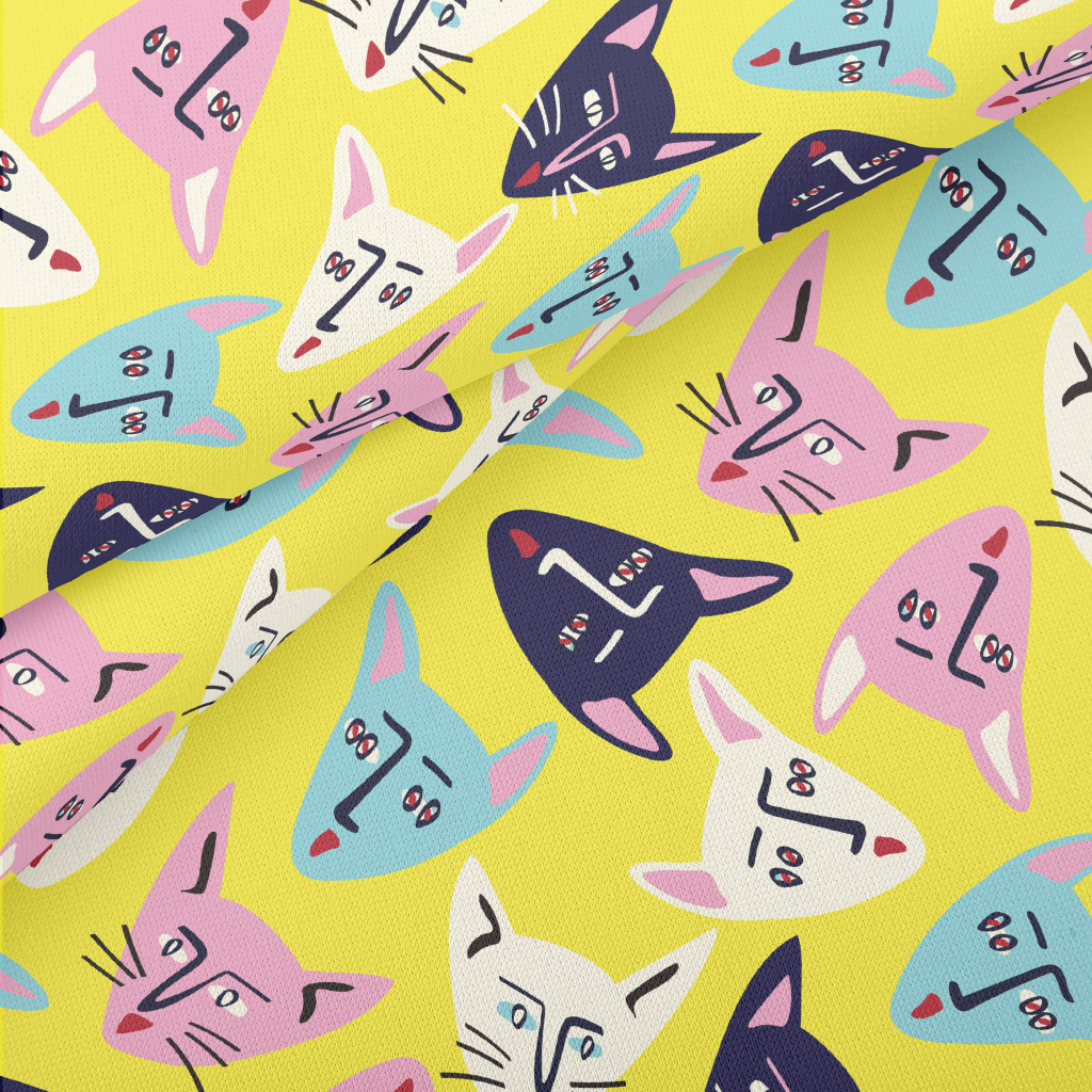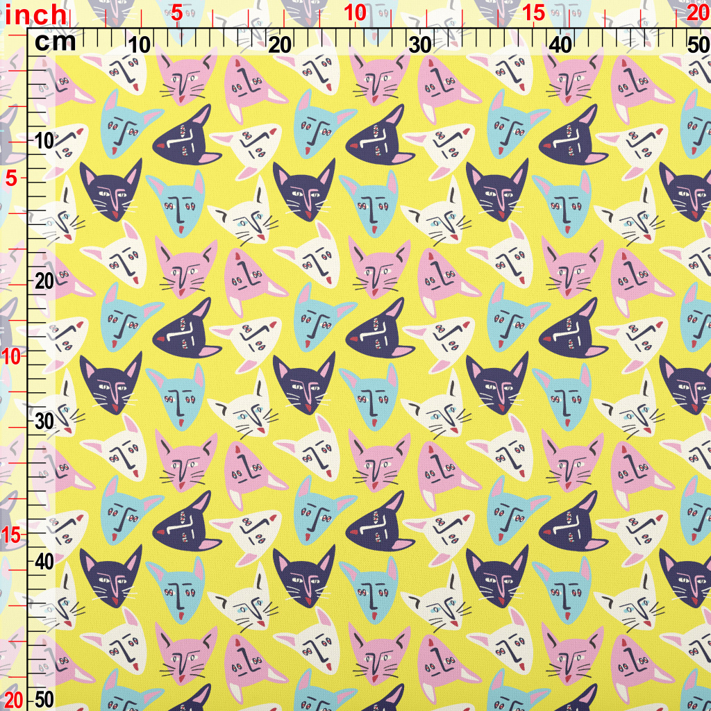 抽象彩色貓咪薄棉布(幅寬150公分)