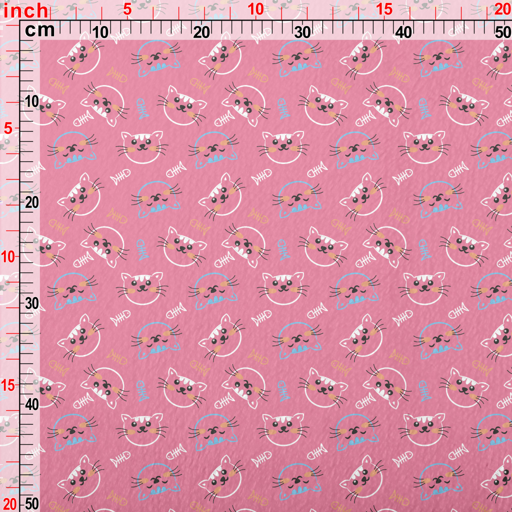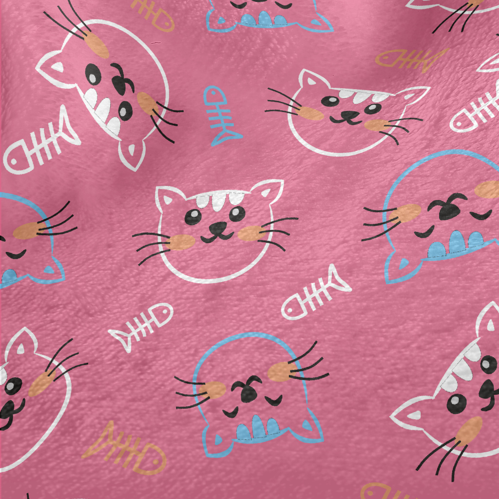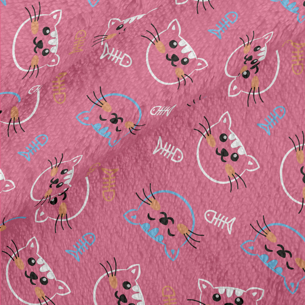 線條開心貓咪和魚骨頭法蘭絨(幅寬150公分)