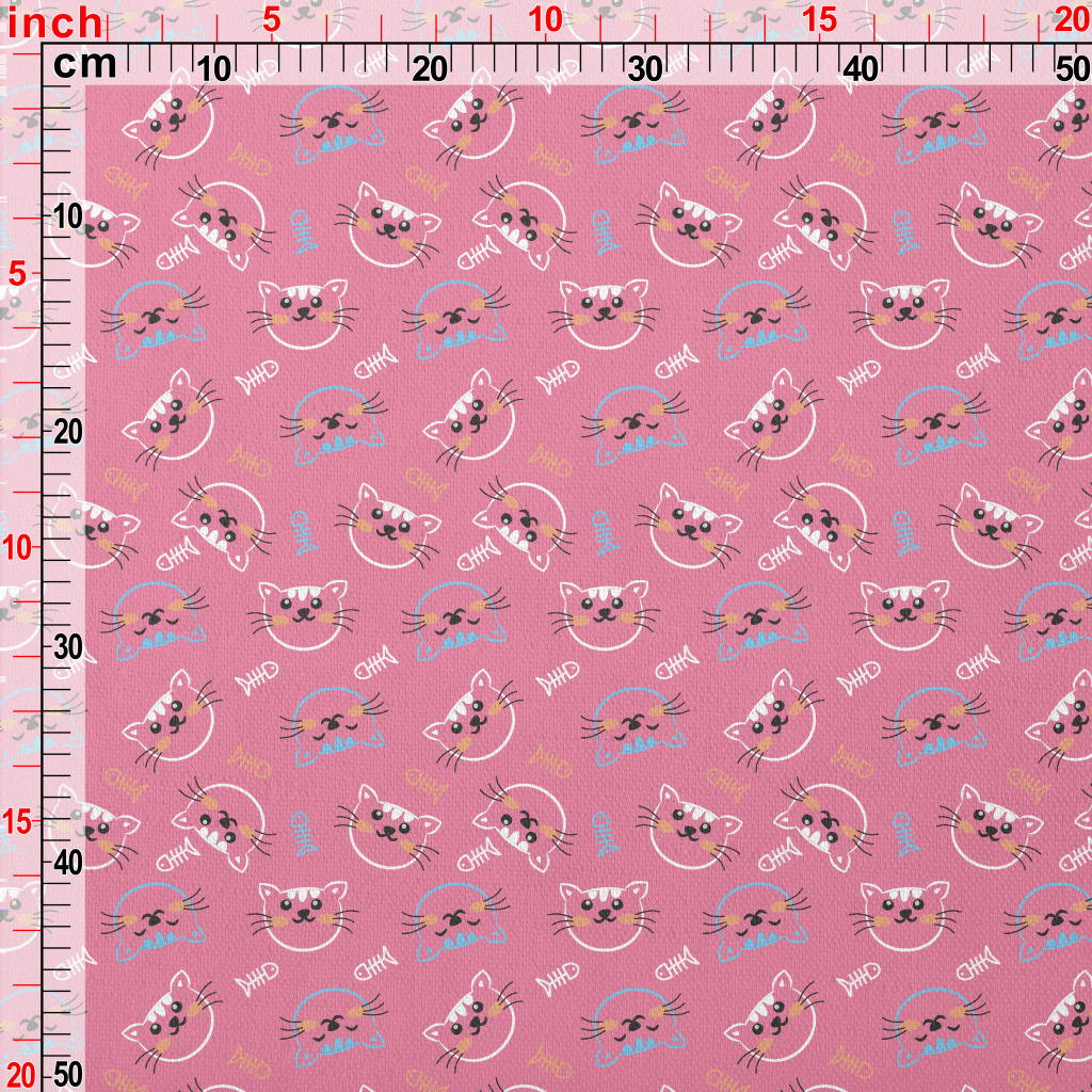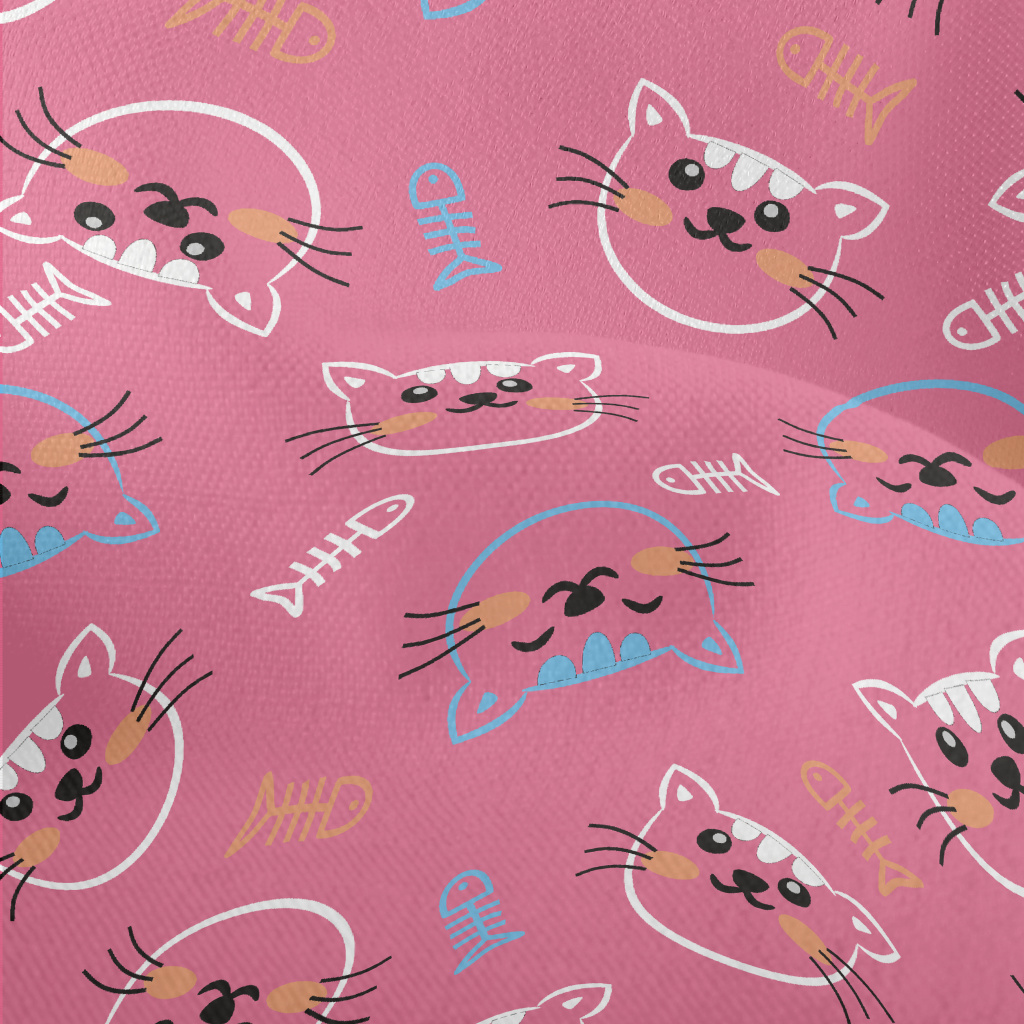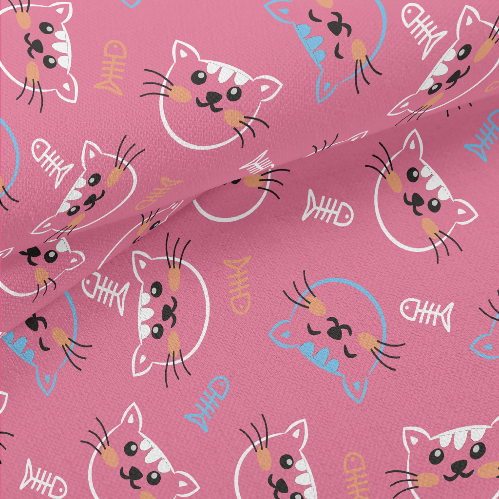 線條開心貓咪和魚骨頭竹節麻(幅寬150公分)