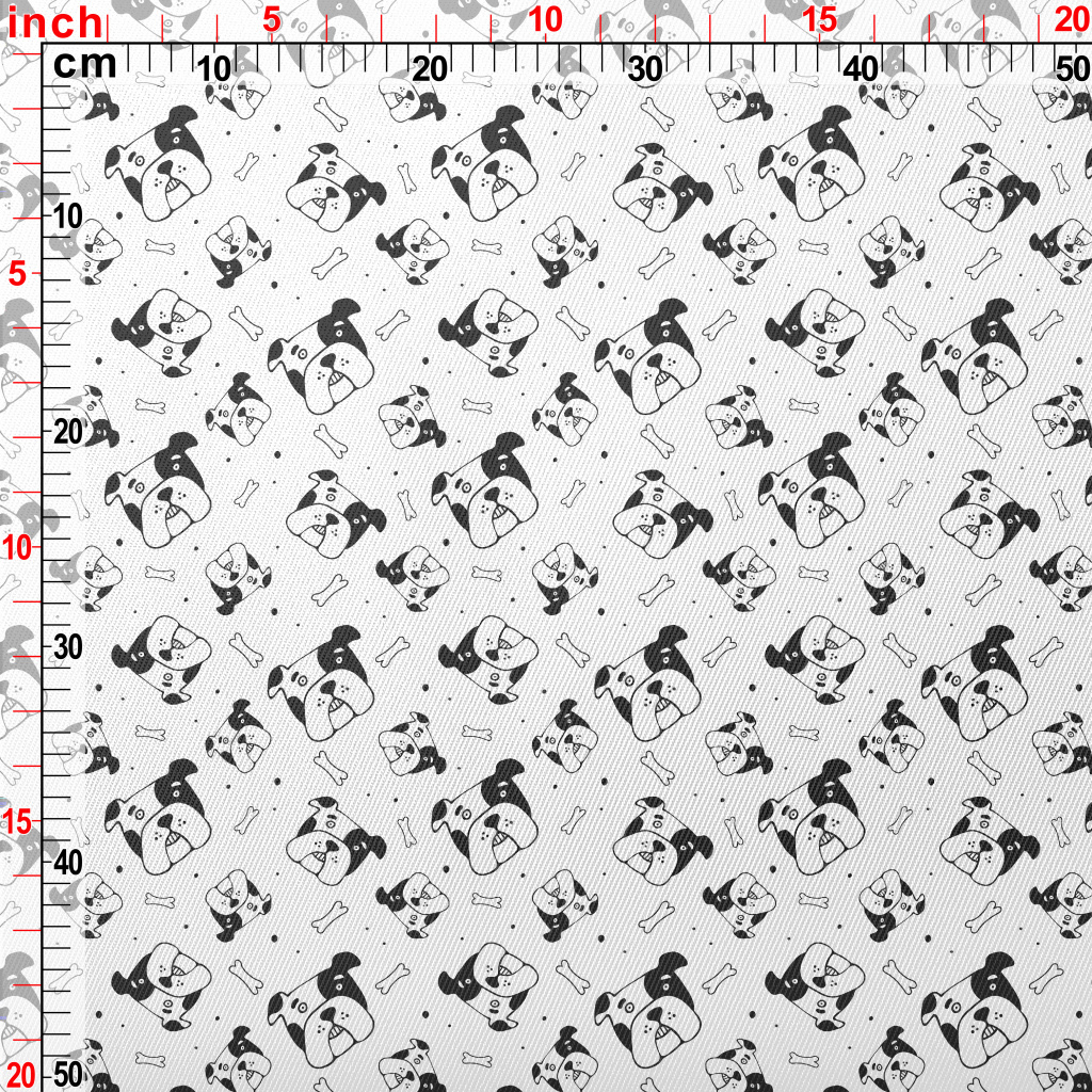 卡通塗鴉風格狗頭斜紋布(幅寬150公分)