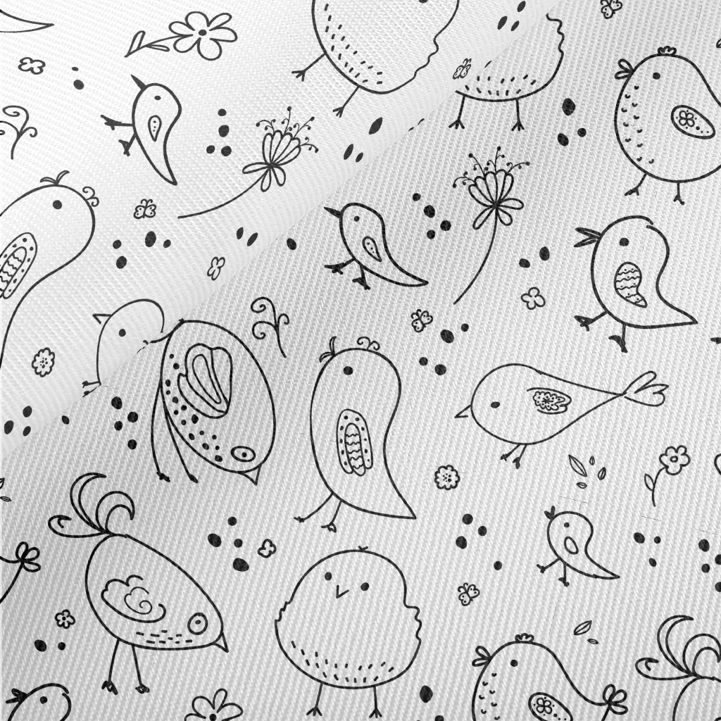 簡約塗鴉各種小鳥斜紋布(幅寬150公分)